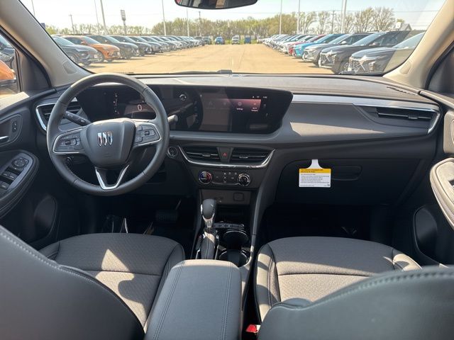 XM SIRIUS Radio, Push button start, Bluetooth, Rear Back Up Camera, Blind spot indicator, Apple Car Play, LCD display screen, Onstar, Steering Wheel Controls, Alloy Wheels, Lane Monitor, Encore GX Preferred, 4D Sport Utility, ECOTEC 1.3L Turbo, 9-Speed Automatic, AWD, Copper Ice Metallic, Ebony w/Ebony Accents w/Cloth with Leatherette Seat Trim, 3.17 Final Drive Axle Ratio, 4-Way Manual Passenger Seat Adjuster, 4-Wheel Disc Brakes, 6-Way Manual Driver Seat Adjuster, 7 Speakers, ABS brakes, Air Conditioning, Alloy wheels, AM/FM radio: SiriusXM, Auto High-beam Headlights, Automatic temperature control, Brake assist, Bumpers: body-color, Cloth with Leatherette Seat Trim, Compass, Delay-off headlights, Driver door bin, Driver vanity mirror, Dual front impact airbags, Dual front side impact airbags, Electronic stabiliy control, Emergency communication system: OnStar and Buick connected services capable, Enhanced Performance 7-Speaker System with Amplifier, Front anti-roll bar, Front Bucket Seats, Front Center Armrest, Front reading lights, Front wheel independent suspension, Fully automatic headlights, Heated door mirrors, Illuminated entry, Knee airbag, Low tire pressure warning, Occupant sensing airbag, Outside temperature display, Overhead airbag, Overhead console, Panic alarm, Passenger door bin, Passenger vanity mirror, Power door mirrors, Power steering, Power windows, Preferred Equipment Group 1SB, Radio data system, Radio: AM/FM Audio System, Rear reading lights, Rear side impact airbag, Rear window defroster, Rear window wiper, Remote keyless entry, Ride and Handling Suspension, Security system, SiriusXM Trial Subscription, Speed control, Speed-sensing steering, Split folding rear seat, Spoiler, Steering wheel mounted audio controls, Tachometer, Telescoping steering wheel, Tilt steering wheel, Traction control, Trip computer, Variably intermittent wipers, Wheels: 18" Bright Silver Painted Aluminum, Wireless Apple CarPlay/Wireless Android Auto. Priced below KBB Fair Purchase Price! 26/28 City/Highway MPG