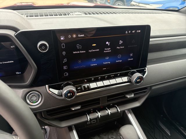 Navigation, Heated seats, Heated steering wheel, XM SIRIUS Radio, Push button start, Bluetooth, Rear Back Up Camera, Power driver's seat, Blind spot indicator, Apple Car Play, LCD display screen, Onstar, Steering Wheel Controls, Alloy Wheels, Lane Monitor, Colorado Trail Boss, 4D Crew Cab, 2.7L I4 Turbocharged DOHC 16V LEV3-ULEV50 310hp, 8-Speed Automatic, 4WD, Radiant Red Tintcoat, Jet Black w/Cloth Seat Trim, 3.42 Rear Axle Ratio, 30" Grille-Mounted Off-Road Grille Light Bar, 4-Way Manual Passenger Seat Adjuster, 4-Wheel Disc Brakes, 6 Speakers, 6-Speaker Audio System Feature, 8-Way Power Driver Seat Adjuster, ABS brakes, Accessory Power Distribution Box, Accessory Switch Kit, Adaptive Cruise Control, Air Conditioning, Alloy wheels, AM/FM radio: SiriusXM with 360L, Apple CarPlay/Android Auto, Auto High-beam Headlights, Automatic Emergency Braking, Automatic temperature control, Brake assist, Chevy Safety Assist, Cloth Seat Trim, Compass, Delay-off headlights, Driver door bin, Driver vanity mirror, Dual front impact airbags, Dual front side impact airbags, Electronic stabiliy control, Emergency communication system: OnStar, Following Distance Indicator, Forward Collision Alert, Front anti-roll bar, Front Bucket Seats, Front Center Armrest, Front dual zone A/C, Front Pedestrian and Bicyclist Braking, Front wheel independent suspension, HD Surround Vision, Heated door mirrors, Illuminated entry, IntelliBeam Automatic High Beam on/Off, Lane Keep Assist with Lane Departure Warning, Low tire pressure warning, Navigation System, Occupant sensing airbag, Off-Road Bumper Lights Wiring Harness, Off-Road Bumper Pod Lights, Off-Road Front Bumper Package, Off-Road Front Bumper with Safari Bar, Outside temperature display, Overhead airbag, Overhead console, Panic alarm, Passenger door bin, Passenger vanity mirror, Power door mirrors, Power steering, Power windows, Preferred Equipment Group 0TR, Radio data system, Radio: 11.3" Diagonal Advanced Color LCD Display, Rear Pedestrian Alert, Rear reading lights, Rear step bumper, Rear window defroster, Remote keyless entry, Security system, SiriusXM with 360L Trial Subscription, Speed control, Speed-sensing steering, Split folding rear seat, Steering Wheel Mounted Audio Controls, Steering wheel mounted audio controls, Tachometer, Technology Package, Tilt steering wheel, Traction control, Trip computer, Variably intermittent wipers, Wheels: 20" x 9" High Gloss Black Aluminum, Wireless Phone Projection.