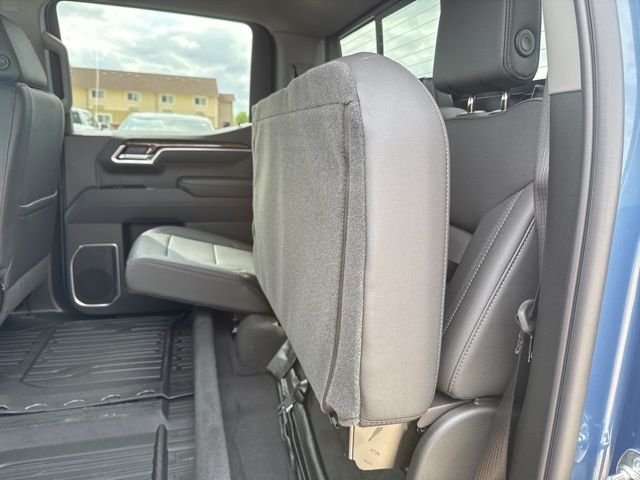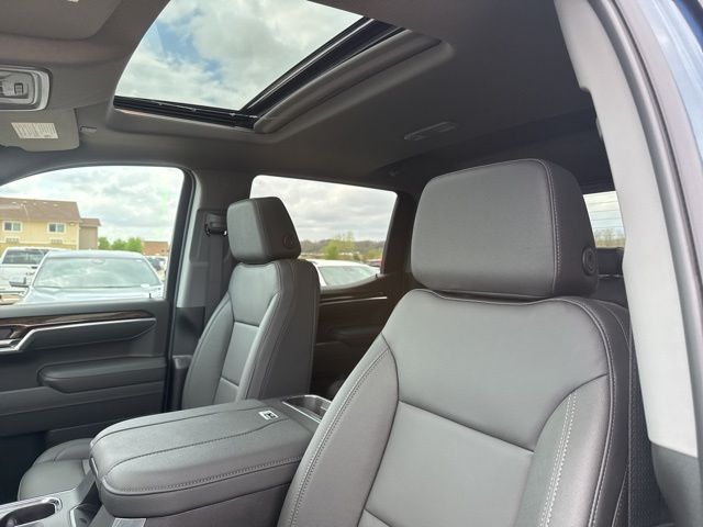 Navigation, Moonroof, Heated seats, Heated steering wheel, XM SIRIUS Radio, Push button start, Bluetooth, Rear Back Up Camera, Power driver's seat, Blind spot indicator, Tow package, Safety Package, Convenience Package, Apple Car Play, LCD display screen, Onstar, Steering Wheel Controls, Alloy Wheels, Power Sunroof/Moonroof, Lane Monitor, Sierra 1500 Elevation, 4D Crew Cab, EcoTec3 5.3L V8, 10-Speed Automatic, 4WD, Downpour Metallic, Jet Black w/Cloth Seat Trim, 10-Way Power Driver Seat Adjuster with Lumbar, 120-Volt Bed Mounted Power Outlet, 120-Volt Interior Power Outlet, 2 Charge/Data USB Ports, 2 Charge/Data USB Ports Inside Center Console, 2 Type-C Charge-Only Rear USB Ports, 220 Amp Alternator, 3.23 Rear Axle Ratio, 4-Way Manual Passenger Seat Adjuster, 4-Wheel Disc Brakes, 6 Speakers, 6-Speaker Audio System Feature, ABS brakes, Adaptive Cruise Control, Air Conditioning, All-Weather Floor Liner, Alloy wheels, AM/FM radio: SiriusXM with 360L, Apple CarPlay/Android Auto, Auto High-beam Headlights, Auto-Locking Rear Differential, Automatic Emergency Braking, Automatic temperature control, Body Color Header with Gloss Black Mesh Grille Bars, Brake assist, Buckle to Drive, Bumpers: body-color, Cloth Rear Seat with Storage Package, Cloth Seat Trim, Color-Keyed Carpeting Floor Covering, Compass, Deep-Tinted Glass, Delay-off headlights, Driver door bin, Driver vanity mirror, Dual Exhaust System, Dual front impact airbags, Dual front side impact airbags, Electric Rear-Window Defogger, Electronic Precision Shift, Electronic stabiliy control, Elevation Premium Package, Emergency communication system: OnStar, Floor-Mounted Center Console, Following Distance Indicator, Forward Collision Alert, Front anti-roll bar, Front Bucket Seats, Front Center Armrest w/Storage, Front dual zone A/C, Front fog lights, Front Frame-Mounted Black Recovery Hooks, Front Pedestrian Braking, Front reading lights, Front Rubberized-Vinyl Floor Mats, Front wheel independent suspension, Fully automatic headlights, HD Rear Vision Camera, HD Surround Vision, Heated door mirrors, Heated Driver and Front Outboard Passenger Seating, Heated front seats, Heated steering wheel, Heavy-Duty Air Filter, High Gloss Black Mirror Caps, Hill Descent Control, Hitch Guidance, Hitch View, Illuminated entry, in-Vehicle Trailering System App, Integrated Trailer Brake Controller, IntelliBeam Automatic High Beam on/Off, Keyless Open and Start, Lane Keep Assist with Lane Departure Warning, Leather-Appointed Seat Trim, LED Cargo Area Lighting, Low tire pressure warning, Manual Tilt-Wheel and Telescoping Steering Column, Navigation System, Occupant sensing airbag, Off-Road Suspension, OnStar Services Capable, Outside temperature display, Overhead airbag, Overhead console, Panic alarm, Passenger door bin, Passenger vanity mirror, Perimeter Lighting, Power Door Locks, Power door mirrors, Power driver seat, Power Front Windows with Driver Express Up/Down, Power Front Windows with Passenger Express Down, Power Rear Windows with Express Down, Power Sliding Rear Window with Rear Defogger, Power steering, Power Sunroof, Power windows, Preferred Equipment Group 3SB, Preferred Package, Premium Bose 7-Speaker Sound System, Push Button Start, Radio data system, Radio: Premium GMC Infotainment Audio System, Rear Cross Traffic Braking, Rear Pedestrian Detection, Rear reading lights, Rear Rubberized-Vinyl Floor Mats, Rear seat center armrest, Rear step bumper, Rear Wheelhouse Liners, Rear window defroster, Remote keyless entry, Remote Vehicle Starter System, Security system, Sierra Safety Plus Package, SiriusXM with 360L Trial Subscription, Speed control, Speed-sensing steering, Split folding rear seat, Spray-on Pickup Bedliner with GMC Logo, Steering Wheel Audio Controls, Steering wheel mounted audio controls, Tachometer, Telescoping steering wheel, Theft Deterrent System (unauthorized Entry), Tilt steering wheel, Traction control, Trailer Camera Provisions, Trailer Side Blind Zone Alert, Tra