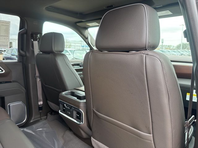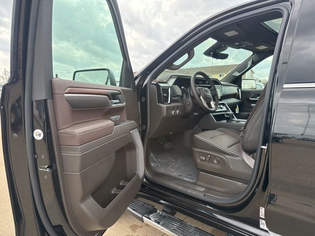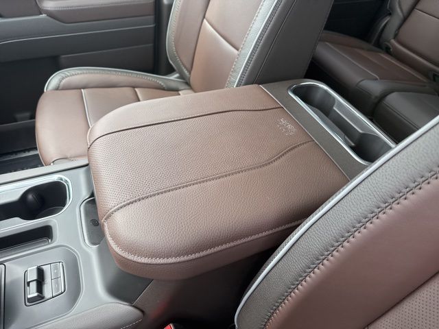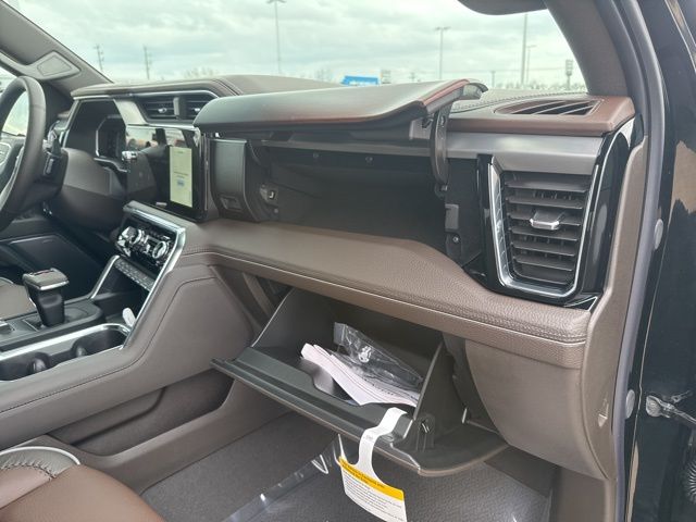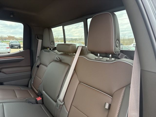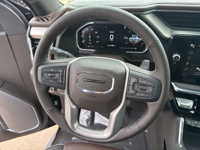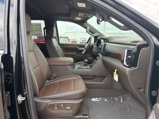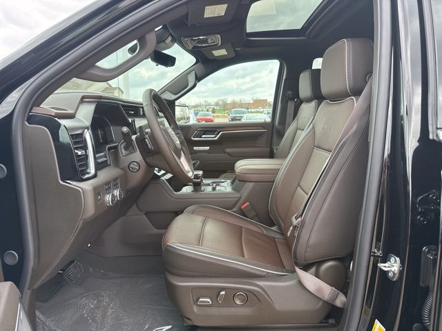 Navigation, Moonroof, Leather, Heated and cooled seats, Heated seats, Heated steering wheel, XM SIRIUS Radio, Push button start, Bluetooth, Rear Back Up Camera, Power driver's seat, Power passenger seat, Memory seats, Blind spot indicator, Tow package, Apple Car Play, LCD display screen, Onstar, Steering Wheel Controls, Alloy Wheels, Leather Interior, Power Sunroof/Moonroof, Lane Monitor, Adaptive Cruise, Sierra 1500 Denali, 4D Crew Cab, 3.0L I6, 10-Speed Automatic, 4WD, Onyx Black, Atmosphere/Brownstone w/Forge Perforated Leather Seat Trim, 12-Way Power Driver Seat Adjuster with Lumbar, 12-Way Power Passenger Seat Adjuster with Lumbar, 120-Volt Bed Mounted Power Outlet, 120-Volt Interior Power Outlet, 2 Charge/Data USB Ports Inside Center Console, 2 Type-C Charge-Only Rear USB Ports, 2 USB Ports, 220 Amp Alternator, 3.23 Rear Axle Ratio, 4-Wheel Disc Brakes, 7 Speakers, ABS brakes, Adaptive suspension, Air Conditioning, Alloy wheels, AM/FM radio: SiriusXM with 360L, Apple CarPlay/Android Auto, Auto High-beam Headlights, Auto-dimming door mirrors, Auto-dimming Rear-View mirror, Auto-Locking Rear Differential, Automatic temperature control, Auxiliary External Transmission Oil Cooler, Bed View Camera, Brake assist, Buckle to Drive, Bumpers: body-color, Chrome Header with Signature Denali Chrome Grille, Chrome Recovery Hooks, Chrome Wheel to Wheel Assist Steps, Color-Keyed Carpeting Floor Covering, Compass, Deep-Tinted Glass, Delay-off headlights, Deleted Mobile Service Plus, Denali Premium Suspension with Adaptive Ride Control, Driver door bin, Driver Memory, Driver vanity mirror, Dual front impact airbags, Dual front side impact airbags, Electric Rear-Window Defogger, Electronic stabiliy control, Emergency communication system: OnStar, Engine Block Heater, Enhanced Automatic Emergency Braking, Floor-Mounted Center Console, Following Distance Indicator, Forge Perforated Leather Seat Trim, Forward Collision Alert, Front anti-roll bar, Front Bucket Seats, Front Center Armrest, Front dual zone A/C, Front fog lights, Front License Plate Kit, Front Pedestrian Braking, Front Rain-Sensing Wipers, Front reading lights, Front wheel independent suspension, Fully automatic headlights, Garage door transmitter, Genuine wood console insert, Genuine wood dashboard insert, Genuine wood door panel insert, HD Surround Vision, Heated 2nd Row Outboard Seats, Heated door mirrors, Heated Driver and Front Outboard Passenger Seating, Heated front seats, Heated rear seats, Heated steering wheel, Heavy-Duty Air Filter, Hill Descent Control, Hitch Guidance, Hitch View, Illuminated entry, in-Vehicle Trailering System App, Integrated Trailer Brake Controller, IntelliBeam Automatic High Beam on/Off, Keyless Open and Start, Lane Keep Assist with Lane Departure Warning, LED Cargo Area Lighting, Low tire pressure warning, Memory seat, Multicolor 15" Diagonal Head-Up Display, Navigation System, Occupant sensing airbag, OnStar Services Capable, Outside temperature display, Overhead airbag, Overhead console, Panic alarm, Passenger door bin, Passenger vanity mirror, Perimeter Lighting, Power Door Locks, Power door mirrors, Power driver seat, Power Front Passenger Windows with Express Up/Down, Power Front Windows with Driver Express Up/Down, Power passenger seat, Power Rake and Telescoping Steering Column, Power Rear Windows with Express Down, Power Sliding Rear Window with Rear Defogger, Power steering, Power Sunroof, Power windows, Preferred Equipment Group 5SA, Premium Bose 7-Speaker Sound System, Push Button Start, Radio data system, Radio: Premium GMC Infotainment Audio System, Rain sensing wipers, Rear Camera Mirror, Rear Cross Traffic Braking, Rear Pedestrian Detection, Rear reading lights, Rear seat center armrest, Rear step bumper, Rear Wheelhouse Liners, Rear window defroster, Remote keyless entry, Remote Vehicle Starter System, Safety Alert Seat, Security system, SiriusXM with 360L Trial Subscription, Speed control, Speed-sensing steering, Split foldi
