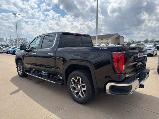 Navigation, Moonroof, Leather, Heated and cooled seats, Heated seats, Heated steering wheel, XM SIRIUS Radio, Push button start, Bluetooth, Rear Back Up Camera, Power driver's seat, Power passenger seat, Memory seats, Blind spot indicator, Tow package, Safety Package, Convenience Package, Apple Car Play, LCD display screen, Onstar, Steering Wheel Controls, Alloy Wheels, Leather Interior, Power Sunroof/Moonroof, Lane Monitor, Sierra 1500 SLT, 4D Crew Cab, 3.0L I6, 10-Speed Automatic, 4WD, Onyx Black, Jet Black w/Perforated Leather-Appointed Front Outboard Seat Trim, 10-Way Power Driver Seat Adjuster with Lumbar, 10-Way Power Passenger Seat Adjuster with Lumbar, 120-Volt Bed Mounted Power Outlet, 120-Volt Interior Power Outlet, 170 Amp Alternator, 2 Charge/Data USB Ports, 2 Charge/Data USB Ports Inside Center Console, 2 Type-C Charge-Only Rear USB Ports, 20" Polished Aluminum Wheels, 3.23 Rear Axle Ratio, 4-Wheel Disc Brakes, 6 Speakers, 6-Speaker Audio System Feature, ABS brakes, Adaptive Cruise Control, Air Conditioning, All-Weather Floor Liner, Alloy wheels, AM/FM radio: SiriusXM with 360L, Apple CarPlay/Android Auto, Auto High-beam Headlights, Auto-dimming door mirrors, Auto-dimming Rear-View mirror, Auto-Locking Rear Differential, Automatic Emergency Braking, Automatic temperature control, Auxiliary External Transmission Oil Cooler, Brake assist, Buckle to Drive, Bumpers: chrome, Chrome Header and Chrome Grille Insert Bars, Chrome Wheel to Wheel Assist Steps, Color-Keyed Carpeting Floor Covering, Compass, Deep-Tinted Glass, Delay-off headlights, Driver door bin, Driver Memory, Driver vanity mirror, Dual Exhaust System, Dual front impact airbags, Dual front side impact airbags, Electric Rear-Window Defogger, Electronic Precision Shift, Electronic stabiliy control, Emergency communication system: OnStar, Floor-Mounted Center Console, Following Distance Indicator, Forward Collision Alert, Front anti-roll bar, Front Bucket Seats, Front Center Armrest w/Storage, Front dual zone A/C, Front fog lights, Front Frame-Mounted Black Recovery Hooks, Front Pedestrian Braking, Front Rain-Sensing Wipers, Front reading lights, Front wheel independent suspension, Fully automatic headlights, HD Rear Vision Camera, HD Surround Vision, Heated 2nd Row Outboard Seats, Heated door mirrors, Heated Driver and Front Outboard Passenger Seating, Heated front seats, Heated steering wheel, Heavy-Duty Air Filter, High Capacity Suspension Package, Hill Descent Control, Hitch Guidance, Hitch View, Illuminated entry, in-Vehicle Trailering System App, Integrated Trailer Brake Controller, IntelliBeam Automatic High Beam on/Off, Keyless Open and Start, Lane Keep Assist with Lane Departure Warning, LED Cargo Area Lighting, Low tire pressure warning, Manual Tilt-Wheel and Telescoping Steering Column, Memory seat, Navigation System, Occupant sensing airbag, Off-Road Suspension, OnStar Services Capable, Outside temperature display, Overhead airbag, Overhead console, Panic alarm, Passenger door bin, Passenger vanity mirror, Perforated Leather-Appointed Front Outboard Seat Trim, Perimeter Lighting, Power Door Locks, Power door mirrors, Power driver seat, Power Front Passenger Windows with Express Up/Down, Power Front Windows with Driver Express Up/Down, Power passenger seat, Power Rake and Telescoping Steering Column, Power Rear Windows with Express Down, Power Sliding Rear Window with Rear Defogger, Power steering, Power Sunroof, Power windows, Preferred Equipment Group 4SA, Premium Bose 7-Speaker Sound System, ProGrade Trailering System, Push Button Start, Radio data system, Radio: Premium GMC Infotainment Audio System, Rain sensing wipers, Rear Cross Traffic Braking, Rear Pedestrian Detection, Rear reading lights, Rear seat center armrest, Rear step bumper, Rear Wheelhouse Liners, Rear window defroster, Remote keyless entry, Remote Vehicle Starter System, Safety Alert Seat, Security system, Sierra Safety Plus Package, SiriusXM with 360L Trial Subscription, SLT