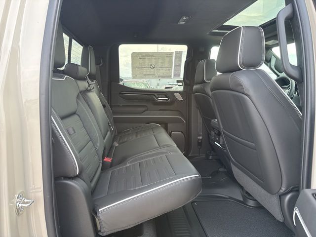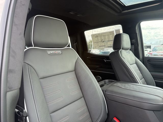 Navigation, Moonroof, Leather, Heated and cooled seats, Heated seats, Heated steering wheel, XM SIRIUS Radio, Push button start, Bluetooth, Rear Back Up Camera, Power driver's seat, Power passenger seat, Memory seats, Blind spot indicator, Tow package, Apple Car Play, LCD display screen, Onstar, Steering Wheel Controls, Alloy Wheels, Leather Interior, Power Sunroof/Moonroof, Lane Monitor, Sierra 1500 AT4X, 4D Crew Cab, 3.0L I6, 10-Speed Automatic, 4WD, Coastal Dune, Obsidian Rush w/Full Grain Leather Seat Trim, 12 Speakers, 120-Volt Bed Mounted Power Outlet, 120-Volt Interior Power Outlet, 16-Way Power Driver Seat Adjuster with Lumbar, 16-Way Power Passenger Seat Adjuster with Lumbar, 2 Charge/Data USB Ports Inside Center Console, 2 Type-C Charge-Only Rear USB Ports, 2 USB Ports, 220 Amp Alternator, 3.23 Rear Axle Ratio, 4-Wheel Disc Brakes, ABS brakes, Air Conditioning, Alloy wheels, AM/FM radio: SiriusXM with 360L, Apple CarPlay/Android Auto, Auto High-beam Headlights, Auto-dimming door mirrors, Auto-dimming Rear-View mirror, Automatic Emergency Braking, Automatic temperature control, Bed View Camera, Black Badging Package, Black GMC Emblems, Black Sierra Nameplates, Block heater, Bose Premium Series with 12- Speaker System, Brake assist, Buckle to Drive, Color-Keyed Carpeting Floor Covering, Compass, Deep-Tinted Glass, Delay-off headlights, Driver door bin, Driver Memory, Driver vanity mirror, Driver-Selectable Full-Locking Front Differential, Driver-Selectable Full-Locking Rear Differential, Dual front impact airbags, Dual front side impact airbags, Electric Rear-Window Defogger, Electronic stabiliy control, Emergency communication system: OnStar, Floor-Mounted Center Console, Following Distance Indicator, Forward Collision Alert, Front anti-roll bar, Front Bucket Seats, Front Center Armrest, Front dual zone A/C, Front fog lights, Front Pedestrian Braking, Front Premium Floor Liners with Removable Carpet Insert, Front Rain-Sensing Wipers, Front reading lights, Front wheel independent suspension, Full Grain Leather Seat Trim, Fully automatic headlights, Garage door transmitter, Genuine wood dashboard insert, Genuine wood door panel insert, Gloss Black Header with Dark Nickel Grille Insert Bars, HD Surround Vision, Heads-Up Display, Heated 2nd Row Outboard Seats, Heated door mirrors, Heated Driver and Front Outboard Passenger Seating, Heated front seats, Heated rear seats, Heated steering wheel, Heavy-Duty Air Filter, Hill Descent Control, Hitch Guidance, Hitch View, Illuminated entry, in-Vehicle Trailering System App, Integrated Trailer Brake Controller, IntelliBeam Automatic High Beam on/Off, Keyless Open and Start, Lane Keep Assist with Lane Departure Warning, Leather steering wheel, LED Cargo Area Lighting, Low tire pressure warning, Memory seat, Multicolor 15" Diagonal Head-Up Display, MultiPro Tailgate Audio System by Kicker, Navigation System, Occupant sensing airbag, Off-Road Suspension, OnStar Services Capable, Outside temperature display, Overhead airbag, Overhead console, Panic alarm, Passenger door bin, Passenger vanity mirror, Perimeter Lighting, Power Door Locks, Power door mirrors, Power driver seat, Power Front Passenger Windows with Express Up/Down, Power Front Windows with Driver Express Up/Down, Power passenger seat, Power Rake and Telescoping Steering Column, Power Rear Windows with Express Down, Power Sliding Rear Window with Rear Defogger, Power steering, Power Sunroof, Power windows, Preferred Equipment Group 4SG, Push Button Start, Radio data system, Radio: Premium GMC Infotainment Audio System, Rain sensing wipers, Rear Cross Traffic Braking, Rear Pedestrian Detection, Rear Premium Floor Liners with Removable Carpet Insert, Rear reading lights, Rear seat center armrest, Rear step bumper, Rear Wheelhouse Liners, Rear window defroster, Remote keyless entry, Remote Vehicle Starter System, Safety Alert Seat, Security system, SiriusXM with 360L Trial Subscription, Speed control, Speed-sensing steering
