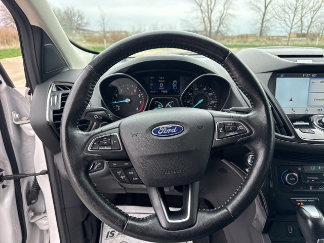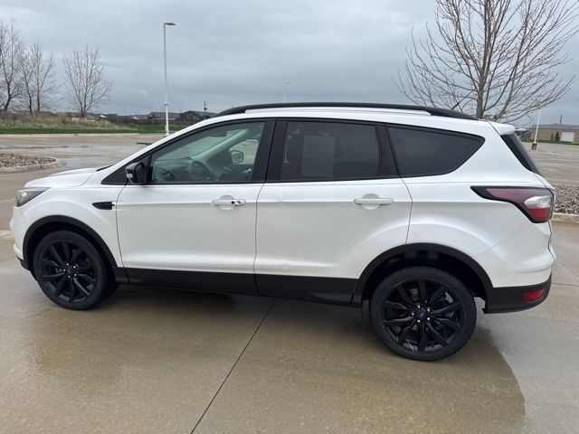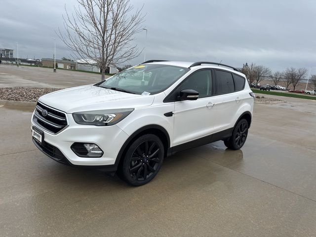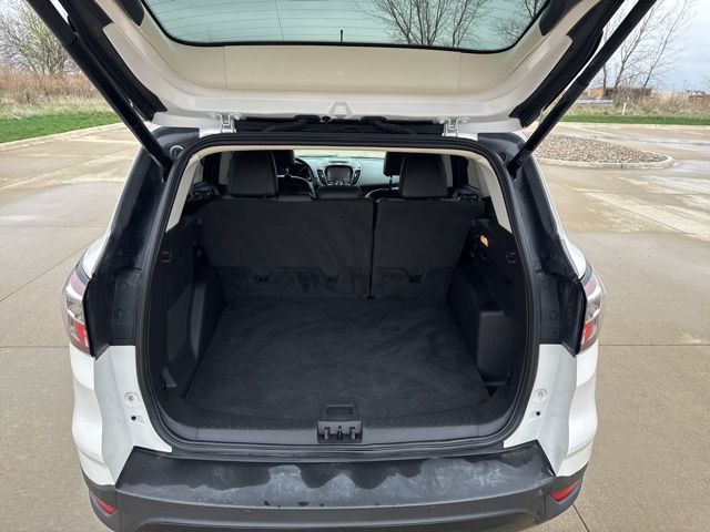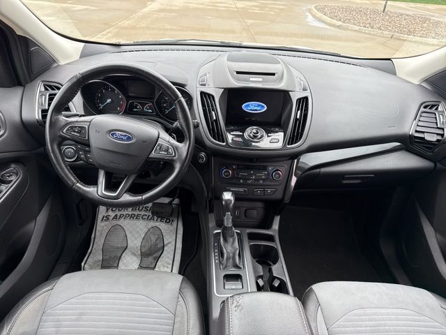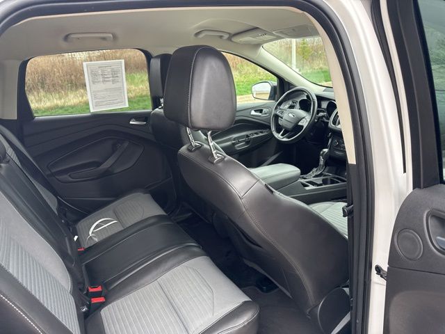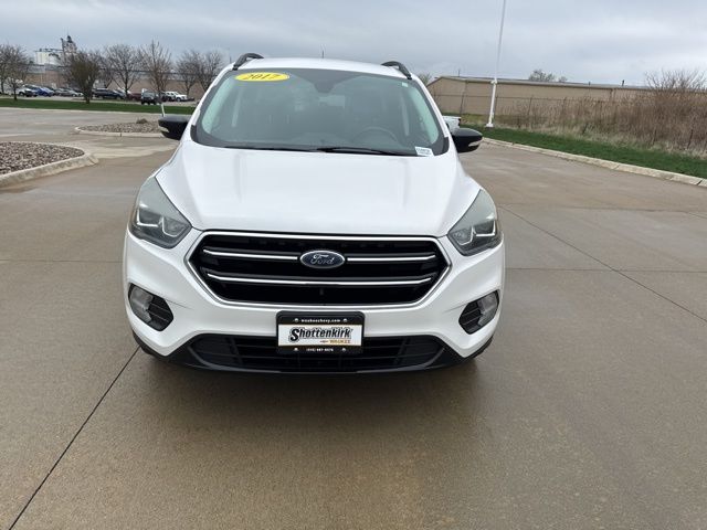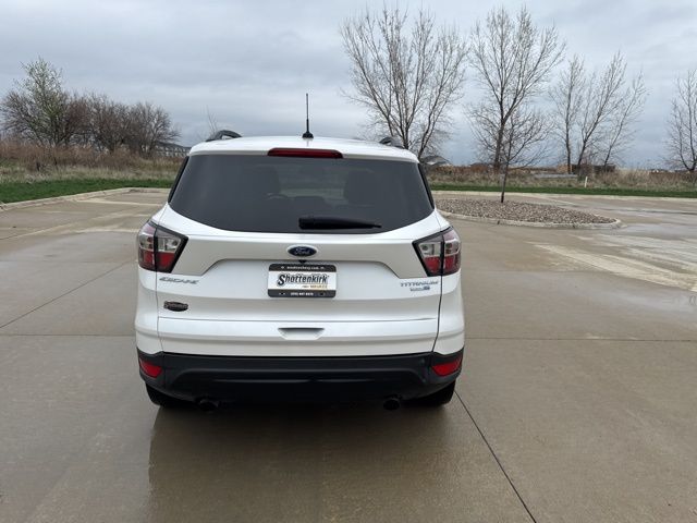Recent Arrival! White Platinum Clearcoat Metallic 2017 Ford Escape Titanium 4WD 4D Sport Utility EcoBoost 2.0L I4 GTDi DOHC Turbocharged VCT 4WD 6-Speed Automatic Black Beltline Molding, Black Roof-Rack Side Rails, Equipment Group 300A, Front & Rear Gloss-Black Painted Skid Plates, Gloss Black-Painted Sideview Mirror Caps, Gloss Black-Painted Upper Grille Bars & Plinth, Halogen Projector Headlamps w/Black Bezel, LED Tail Lamps w/Black Bezel, Partial Leather Sport Buckets w/60/40 Rear Seat, Titanium Sport Appearance Package, Wheels: 19" Ebony Black Prem Painted Alum Wheels. Clean CARFAX.