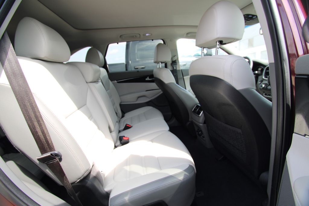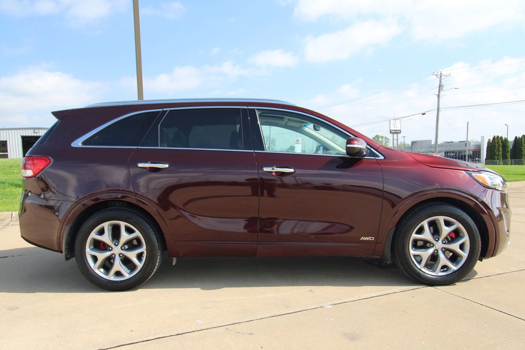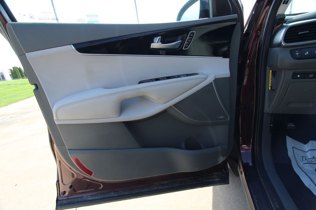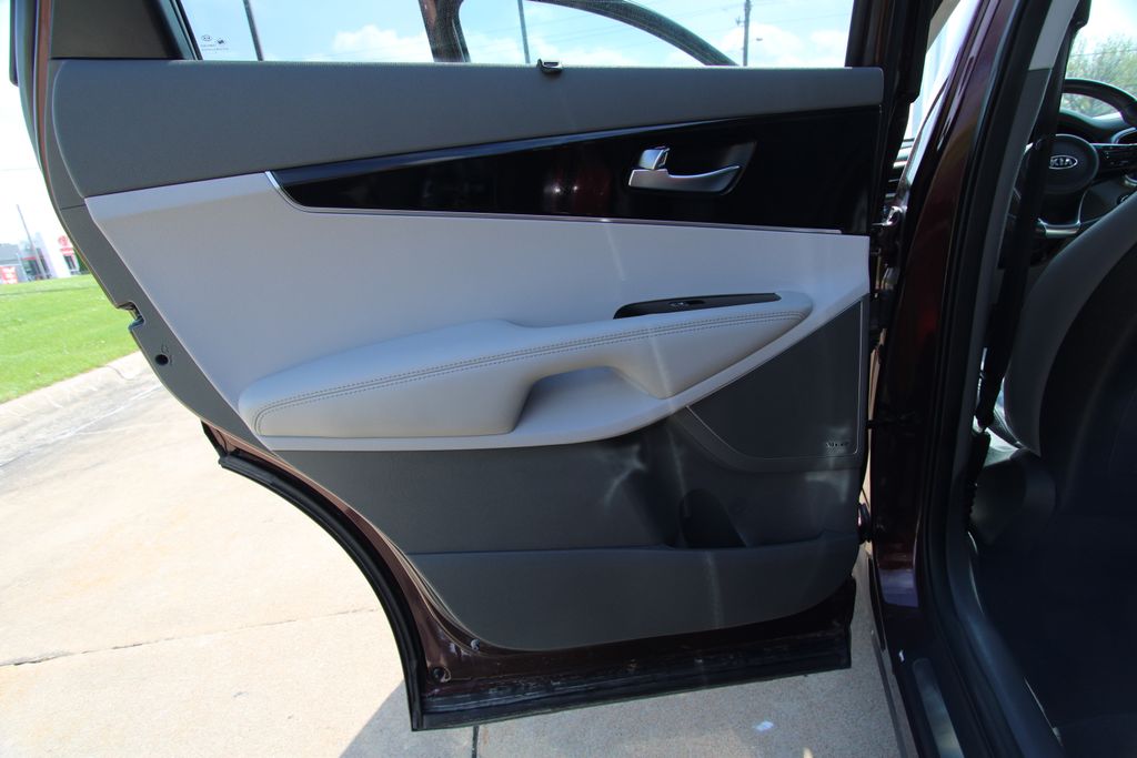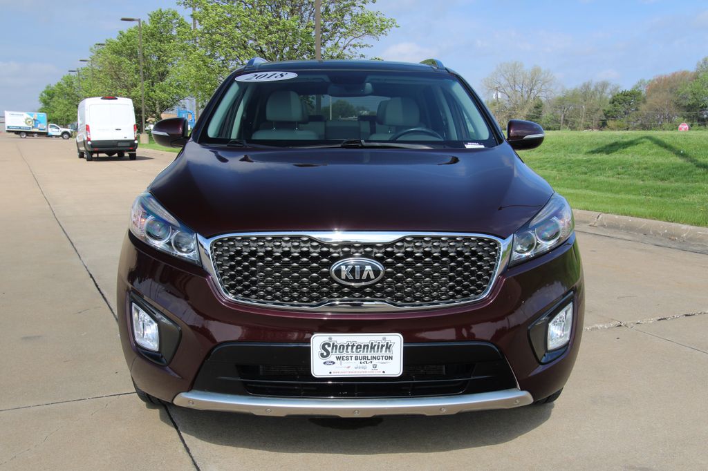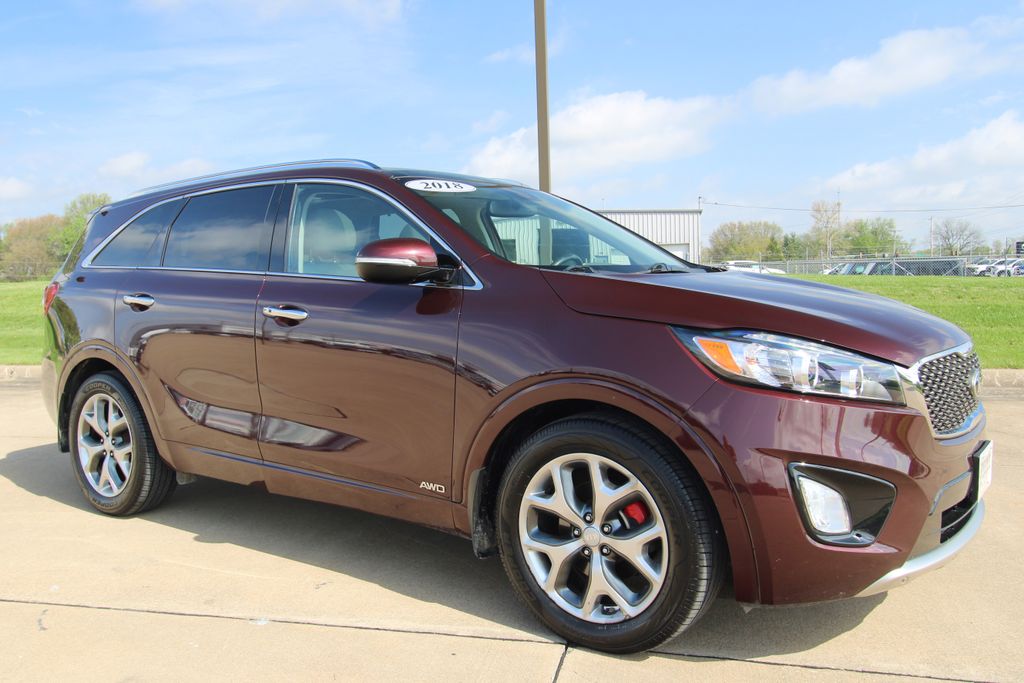 2018 Kia Sorento SX Sangria 4D Sport Utility 3.3L DOHC 6-Speed Automatic with Sportmatic AWD SX This vehicle comes well equipped with 3.041 Axle Ratio, 3rd row seats: split-bench, 4-Wheel Disc Brakes, 8 Speakers, ABS brakes, Air Conditioning, Alloy wheels, AM/FM radio: SiriusXM, Anti-whiplash front head restraints, Apple CarPlay & Android Auto, Auto-dimming Rear-View mirror, Automatic temperature control, Brake assist, Bumpers: body-color, Cargo Net, CD player, Delay-off headlights, Driver door bin, Driver vanity mirror, Dual front impact airbags, Dual front side impact airbags, Electronic Stability Control, Emergency communication system: UVO3, Exterior Parking Camera Rear, Four wheel independent suspension, Front anti-roll bar, Front Bucket Seats, Front Center Armrest, Front dual zone A/C, Front fog lights, Front reading lights, Fully automatic headlights, Garage door transmitter: HomeLink, Heated door mirrors, Heated Front Bucket Seats, Heated front seats, Illuminated entry, Leather Seat Trim, Low tire pressure warning, Memory seat, Mudguards: front & rear, Navigation System, Occupant sensing airbag, Outside temperature display, Overhead airbag, Overhead console, Panic alarm, Passenger door bin, Passenger vanity mirror, Power door mirrors, Power driver seat, Power Liftgate, Power moonroof, Power passenger seat, Power steering, Power windows, Radio: UVO eServices w/Premium Navigation, Rain sensing wipers, Rear air conditioning, Rear anti-roll bar, Rear reading lights, Rear seat center armrest, Rear window defroster, Rear window wiper, Remote keyless entry, Remote Start (Push Button), Roof rack: rails only, Security system, Speed control, Speed-sensing steering, Split folding rear seat, Spoiler, Steering wheel mounted audio controls, Tachometer, Telescoping steering wheel, Tilt steering wheel, Traction control, Trip computer, Turn signal indicator mirrors, Variably intermittent wipers, and Wheels: 19" x 7.5 Machined Finish Alloy.
