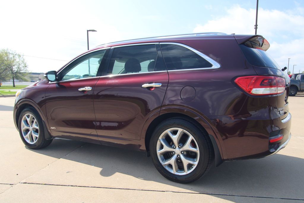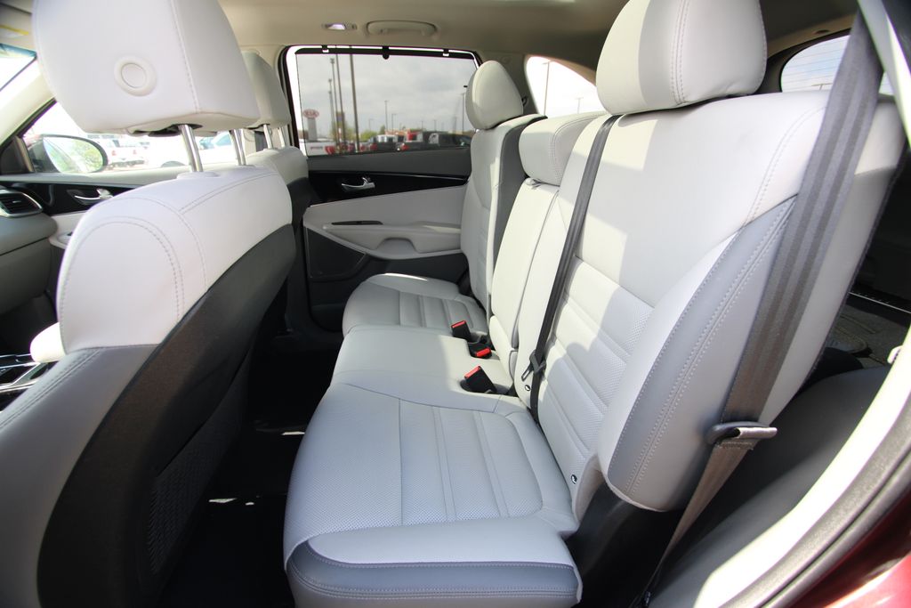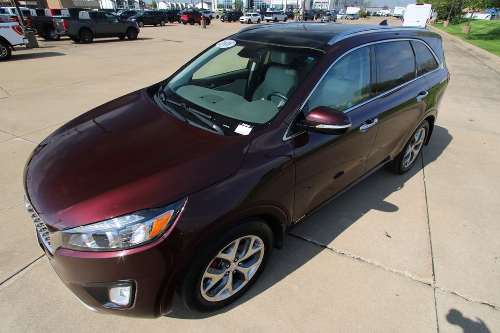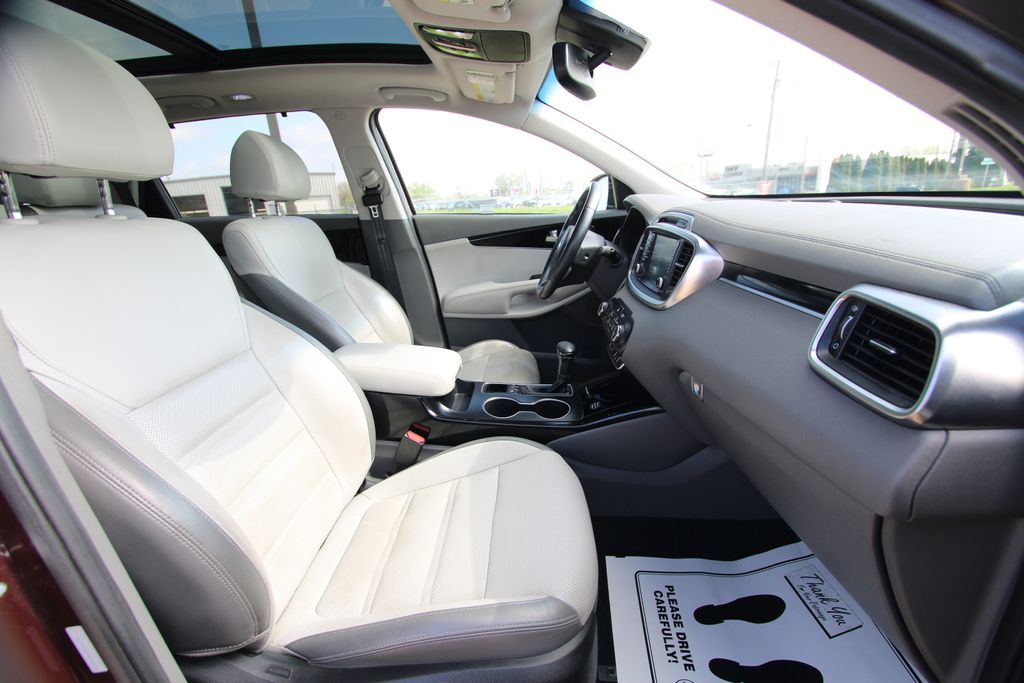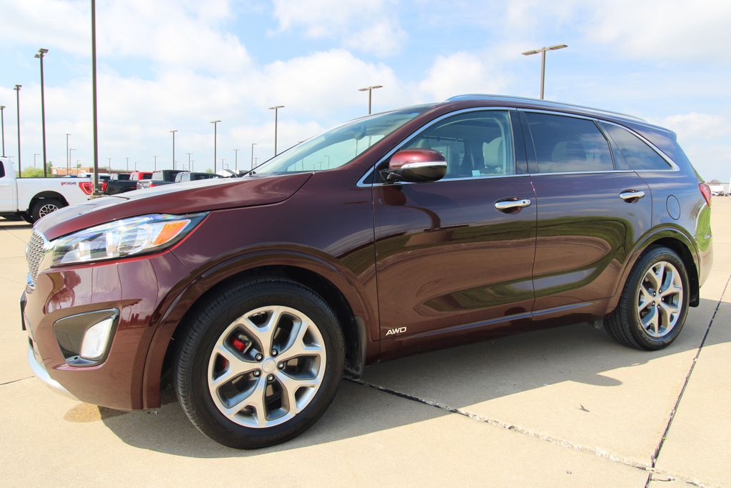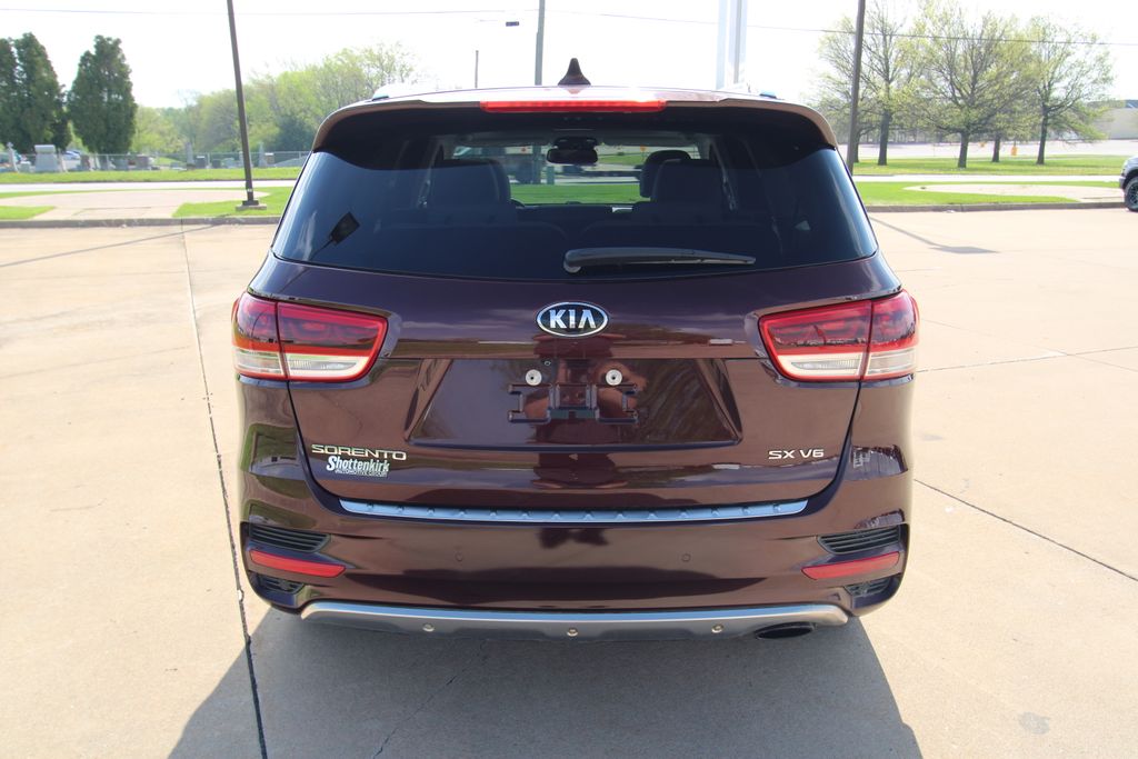 2018 Kia Sorento SX Sangria 4D Sport Utility 3.3L DOHC 6-Speed Automatic with Sportmatic AWD SX This vehicle comes well equipped with 3.041 Axle Ratio, 3rd row seats: split-bench, 4-Wheel Disc Brakes, 8 Speakers, ABS brakes, Air Conditioning, Alloy wheels, AM/FM radio: SiriusXM, Anti-whiplash front head restraints, Apple CarPlay & Android Auto, Auto-dimming Rear-View mirror, Automatic temperature control, Brake assist, Bumpers: body-color, Cargo Net, CD player, Delay-off headlights, Driver door bin, Driver vanity mirror, Dual front impact airbags, Dual front side impact airbags, Electronic Stability Control, Emergency communication system: UVO3, Exterior Parking Camera Rear, Four wheel independent suspension, Front anti-roll bar, Front Bucket Seats, Front Center Armrest, Front dual zone A/C, Front fog lights, Front reading lights, Fully automatic headlights, Garage door transmitter: HomeLink, Heated door mirrors, Heated Front Bucket Seats, Heated front seats, Illuminated entry, Leather Seat Trim, Low tire pressure warning, Memory seat, Mudguards: front & rear, Navigation System, Occupant sensing airbag, Outside temperature display, Overhead airbag, Overhead console, Panic alarm, Passenger door bin, Passenger vanity mirror, Power door mirrors, Power driver seat, Power Liftgate, Power moonroof, Power passenger seat, Power steering, Power windows, Radio: UVO eServices w/Premium Navigation, Rain sensing wipers, Rear air conditioning, Rear anti-roll bar, Rear reading lights, Rear seat center armrest, Rear window defroster, Rear window wiper, Remote keyless entry, Remote Start (Push Button), Roof rack: rails only, Security system, Speed control, Speed-sensing steering, Split folding rear seat, Spoiler, Steering wheel mounted audio controls, Tachometer, Telescoping steering wheel, Tilt steering wheel, Traction control, Trip computer, Turn signal indicator mirrors, Variably intermittent wipers, and Wheels: 19" x 7.5 Machined Finish Alloy.