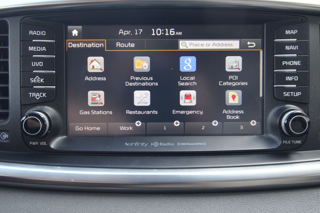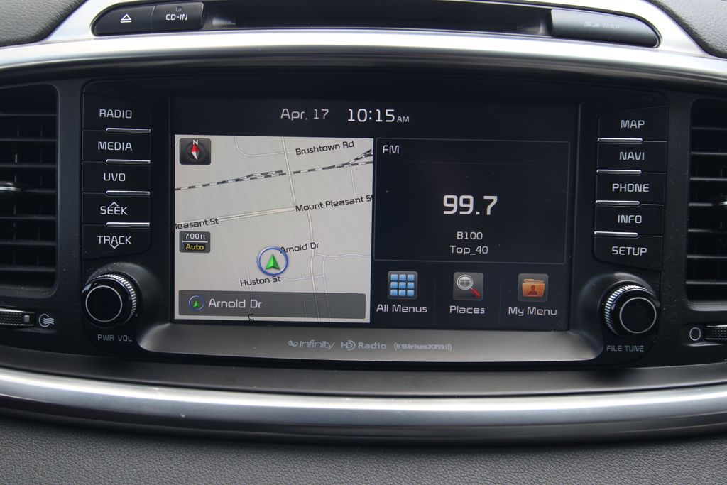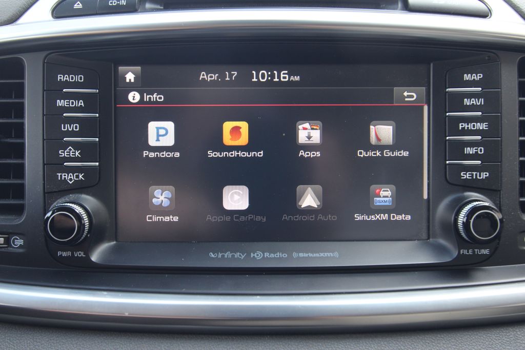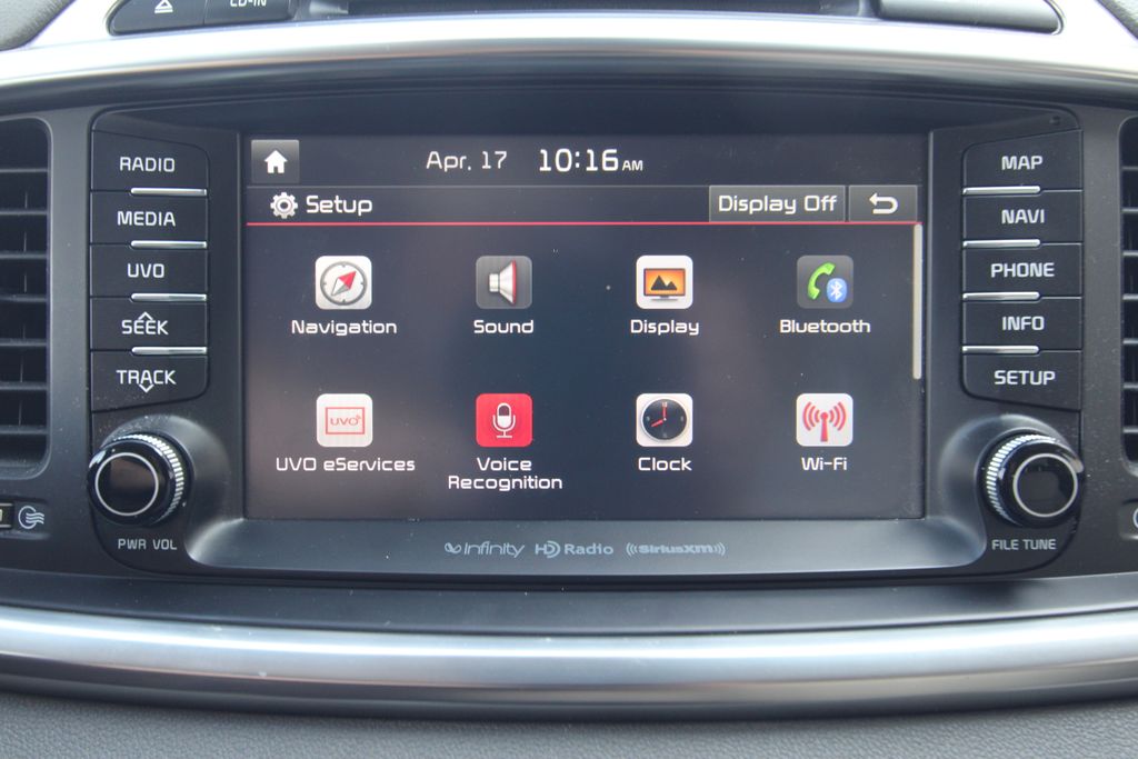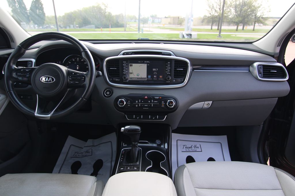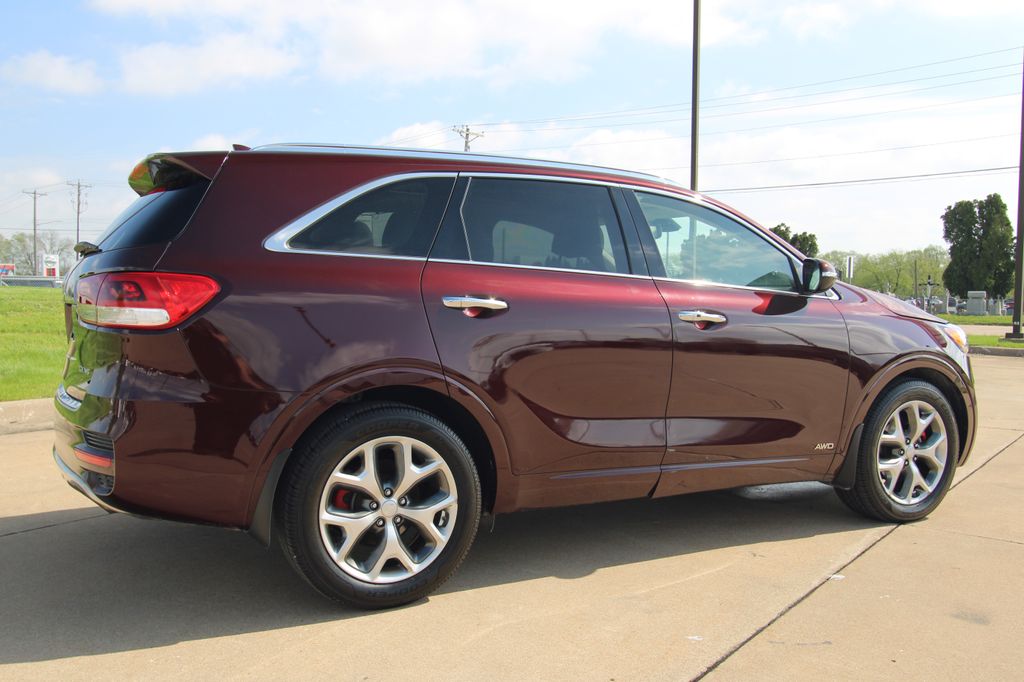 2018 Kia Sorento SX Sangria 4D Sport Utility 3.3L DOHC 6-Speed Automatic with Sportmatic AWD SX This vehicle comes well equipped with 3.041 Axle Ratio, 3rd row seats: split-bench, 4-Wheel Disc Brakes, 8 Speakers, ABS brakes, Air Conditioning, Alloy wheels, AM/FM radio: SiriusXM, Anti-whiplash front head restraints, Apple CarPlay & Android Auto, Auto-dimming Rear-View mirror, Automatic temperature control, Brake assist, Bumpers: body-color, Cargo Net, CD player, Delay-off headlights, Driver door bin, Driver vanity mirror, Dual front impact airbags, Dual front side impact airbags, Electronic Stability Control, Emergency communication system: UVO3, Exterior Parking Camera Rear, Four wheel independent suspension, Front anti-roll bar, Front Bucket Seats, Front Center Armrest, Front dual zone A/C, Front fog lights, Front reading lights, Fully automatic headlights, Garage door transmitter: HomeLink, Heated door mirrors, Heated Front Bucket Seats, Heated front seats, Illuminated entry, Leather Seat Trim, Low tire pressure warning, Memory seat, Mudguards: front & rear, Navigation System, Occupant sensing airbag, Outside temperature display, Overhead airbag, Overhead console, Panic alarm, Passenger door bin, Passenger vanity mirror, Power door mirrors, Power driver seat, Power Liftgate, Power moonroof, Power passenger seat, Power steering, Power windows, Radio: UVO eServices w/Premium Navigation, Rain sensing wipers, Rear air conditioning, Rear anti-roll bar, Rear reading lights, Rear seat center armrest, Rear window defroster, Rear window wiper, Remote keyless entry, Remote Start (Push Button), Roof rack: rails only, Security system, Speed control, Speed-sensing steering, Split folding rear seat, Spoiler, Steering wheel mounted audio controls, Tachometer, Telescoping steering wheel, Tilt steering wheel, Traction control, Trip computer, Turn signal indicator mirrors, Variably intermittent wipers, and Wheels: 19" x 7.5 Machined Finish Alloy.