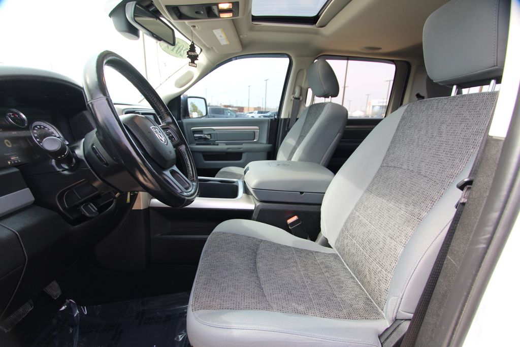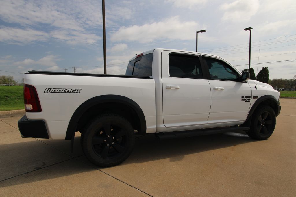 2019 Ram 1500 Classic Warlock Bright White Clearcoat 4D Crew Cab HEMI 5.7L V8 Multi Displacement VVT 8-Speed Automatic 4WD Warlock This vehicle comes well equipped with 3.21 Rear Axle Ratio, 4-Wheel Disc Brakes, 40/20/40 Split Bench Seat, 6 Speakers, ABS brakes, Active Grille Shutters, Air Conditioning, Alloy wheels, AM/FM radio: SiriusXM, Black Exterior Mirrors, Brake assist, Bumpers: chrome, Center Hub, Compass, Delay-off headlights, Driver door bin, Dual front impact airbags, Dual front side impact airbags, Electronic Shift, Electronic Stability Control, Exterior Mirrors w/Heating Element, Front anti-roll bar, Front Armrest w/3 Cupholders, Front Center Armrest w/Storage, Front reading lights, Front wheel independent suspension, Fully automatic headlights, GPS Antenna Input, Heated door mirrors, Illuminated entry, Integrated Voice Command w/Bluetooth, Low tire pressure warning, Occupant sensing airbag, Outside temperature display, Overhead airbag, Overhead console, Panic alarm, ParkView Rear Back-Up Camera, Passenger door bin, Passenger vanity mirror, Power door mirrors, Power steering, Power windows, Radio data system, Rear anti-roll bar, Rear seat center armrest, Rear step bumper, Remote keyless entry, Remote USB Port - Charge Only, Speed control, Storage Tray, Tachometer, Tilt steering wheel, Tip Start, Traction control, Trip computer, Variably intermittent wipers, and Voltmeter.