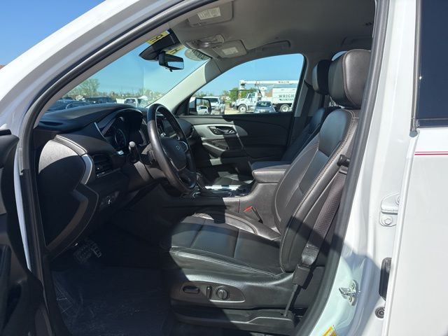 CARFAX One-Owner. Clean CARFAX. Navigation, Leather, Heated seats, XM SIRIUS Radio, Push button start, Local trade, Shottenkirk Certified, Fully Serviced and Detailed, Bluetooth, Rear Back Up Camera, Three rows of seating, Power driver's seat, Power passenger seat, Blind spot indicator, Tow package, Apple Car Play, Onstar, Free Carfax history report, Steering Wheel Controls, Alloy Wheels, Leather Interior, Lane Monitor, Traverse RS, 4D Sport Utility, 3.6L V6 SIDI VVT, 9-Speed Automatic, AWD, Summit White, Jet Black w/Leather-Appointed Seat Trim, 10 Speakers, 3.49 Axle Ratio, 3rd row seats: split-bench, 4-Wheel Disc Brakes, 7-Passenger Seating (2-2-3 Seating Configuration), ABS brakes, Air Conditioning, Alloy wheels, AM/FM radio: SiriusXM, Apple CarPlay/Android Auto, Auto High-beam Headlights, Auto-dimming Rear-View mirror, Automatic temperature control, Bose Premium 10-Speaker Audio System Feature, Brake assist, Bumpers: body-color, Compass, Delay-off headlights, Driver door bin, Driver vanity mirror, Dual front impact airbags, Dual front side impact airbags, Electronic stabiliy control, Emergency communication system: OnStar and Chevrolet connected services capable, Four wheel independent suspension, Front anti-roll bar, Front Bucket Seats, Front Center Armrest, Front dual zone A/C, Front fog lights, Front License Plate Bracket Mounting Package, Front reading lights, Fully automatic headlights, Garage door transmitter, Heated door mirrors, Heated front seats, Heated steering wheel, Heavy-Duty Cooling System, High-Intensity Discharge Headlights, Hitch Guidance w/Hitch View, Illuminated entry, Lane Departure Warning System, Leather steering wheel, Leather-Appointed Seat Trim, Low tire pressure warning, Navigation System, Occupant sensing airbag, Outside temperature display, Overhead airbag, Overhead console, Panic alarm, Passenger door bin, Passenger vanity mirror, Power door mirrors, Power driver seat, Power Liftgate, Power passenger seat, Power steering, Power windows, Preferred Equipment Group 2LT, Premium audio system: Chevrolet MyLink, Radio data system, Radio: Chevrolet Infotainment 3 Premium System, Rear air conditioning, Rear anti-roll bar, Rear reading lights, Rear window defroster, Rear window wiper, Remote keyless entry, Roof rack: rails only, Security system, SiriusXM w/360L, Speed control, Speed-sensing steering, Spoiler, Steering wheel mounted audio controls, Tachometer, Telescoping steering wheel, Tilt steering wheel, Traction control, Trailering Assist Guidelines, Trailering Equipment, Trip computer, Turn signal indicator mirrors, Variably intermittent wipers, Voltmeter, Wheels: 20" Dark Android Painted Aluminum.