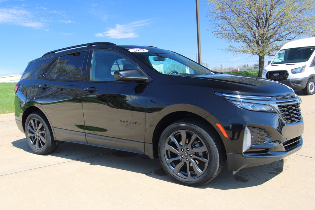 2022 Chevrolet Equinox RS Mosaic Black Metallic 4D Sport Utility 1.5L DOHC 6-Speed Automatic Electronic with Overdrive AWD RS This vehicle comes well equipped with Floor Liner Package (LPO) (All-Weather Floor Liners (LPO) and Integrated Cargo Liner (LPO)), Preferred Equipment Group 1RS, 19" Aluminum Wheels, 2 Rear USB Charging-Only Ports, 2 USB Ports & Auxiliary Input Jack, 2-Way Power Driver Lumbar Control Seat Adjuster, 3.87 Final Drive Axle Ratio, 4-Wheel Disc Brakes, 6 Speaker Audio System Feature, 6 Speakers, 8-Way Power Driver Seat Adjuster, ABS brakes, Air Conditioning, Alloy wheels, AM/FM radio: SiriusXM, Auto High-beam Headlights, Automatic temperature control, Bluetooth® For Phone, Brake assist, Bumpers: body-color, Compass, Delay-off headlights, Driver door bin, Driver vanity mirror, Dual front impact airbags, Dual front side impact airbags, Electronic Stability Control, Emergency communication system: OnStar and Chevrolet connected services capable, Four wheel independent suspension, Front anti-roll bar, Front Bucket Seats, Front Center Armrest, Front dual zone A/C, Front Passenger 4-Way Manual Seat Adjuster, Front reading lights, Fully automatic headlights, Heated door mirrors, Heated Driver & Front Passenger Seats, Heated front seats, Illuminated entry, Leather steering wheel, Low tire pressure warning, Not Equipped w/Driver & Fr Pass Heated Seats, Occupant sensing airbag, Outside temperature display, Overhead airbag, Overhead console, Panic alarm, Passenger door bin, Passenger vanity mirror, Power door mirrors, Power driver seat, Power Liftgate, Power steering, Power windows, Premium audio system: Chevrolet Infotainment 3, Premium Cloth Seat Trim, Radio data system, Radio: Chevrolet Infotainment 3 System w/AM/FM, Rear anti-roll bar, Rear reading lights, Rear seat center armrest, Rear window defroster, Rear window wiper, Remote keyless entry, Roof rack: rails only, Security system, Set of 4 Wheel Locks (LPO), SiriusXM Radio, Speed control, Speed-sensing steering, Split folding rear seat, Spoiler, Steering wheel mounted audio controls, Tachometer, Telescoping steering wheel, Tilt steering wheel, Traction control, Trip computer, Variably intermittent wipers, and Wireless Apple CarPlay/Wireless Android Auto.