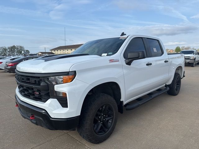Summit White 2023 Chevrolet Silverado 1500 Custom Trail Boss 4D Crew Cab 2.7L Turbo 4WD