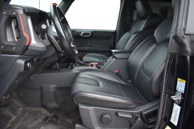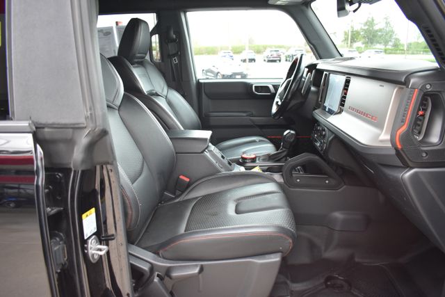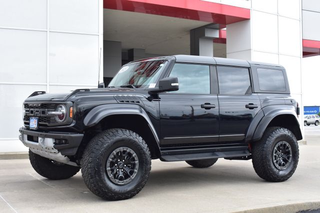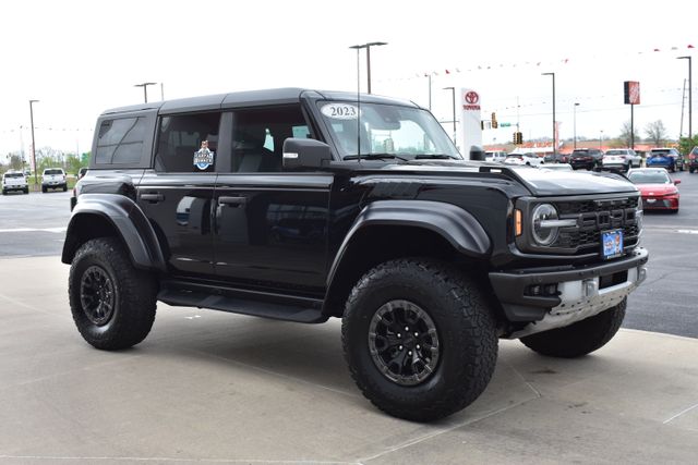 2023 Ford Bronco Shadow Black Raptor 3.0L EcoBoost V6 10-Speed Automatic 4WD Fixed Running Boards, Towing/Camper Pkg, Clean Carfax, One Owner, Navigation, Leather, Local Trade, Backup Camera, Bronco Raptor, 10-Speed Automatic, 4WD, Shadow Black, Black Onyx w/Leather-Trimmed/Vinyl Bucket Seats, 7 Speakers, ABS brakes, Air Conditioning, Alloy wheels, AM/FM radio: SiriusXM with 360L, AM/FM Stereo, Auto-dimming Rear-View mirror, Automatic temperature control, Compass, Connected Navigation, Convertible HardTop, Driver door bin, Driver vanity mirror, Exterior Parking Camera Rear, Front Bucket Seats, Front Center Armrest, Front dual zone A/C, Front reading lights, Fully automatic headlights, Glass rear window, Heated door mirrors, Heated front seats, Illuminated entry, Leather Shift Knob, Low tire pressure warning, Navigation system: Connected Navigation, Occupant sensing airbag, Outside temperature display, Overhead console, Panic alarm, Passenger door bin, Passenger vanity mirror, Power door mirrors, Power steering, Power windows, Radio data system, Rear seat center armrest, Rear window defroster, Rear window wiper, Remote keyless entry, SiriusXM Radio w/360L, Speed control, Split folding rear seat, Steering wheel mounted audio controls, SYNC 4, Telescoping steering wheel, Traction control, Trip computer, Turn signal indicator mirrors.