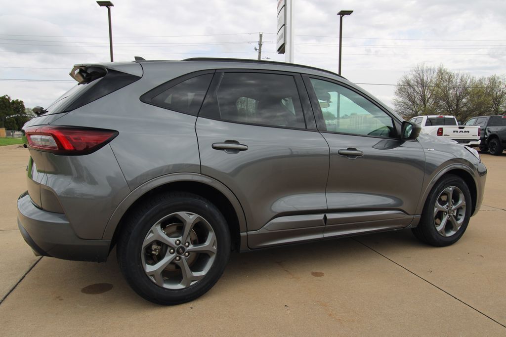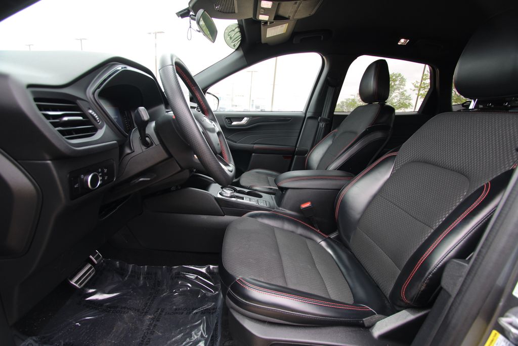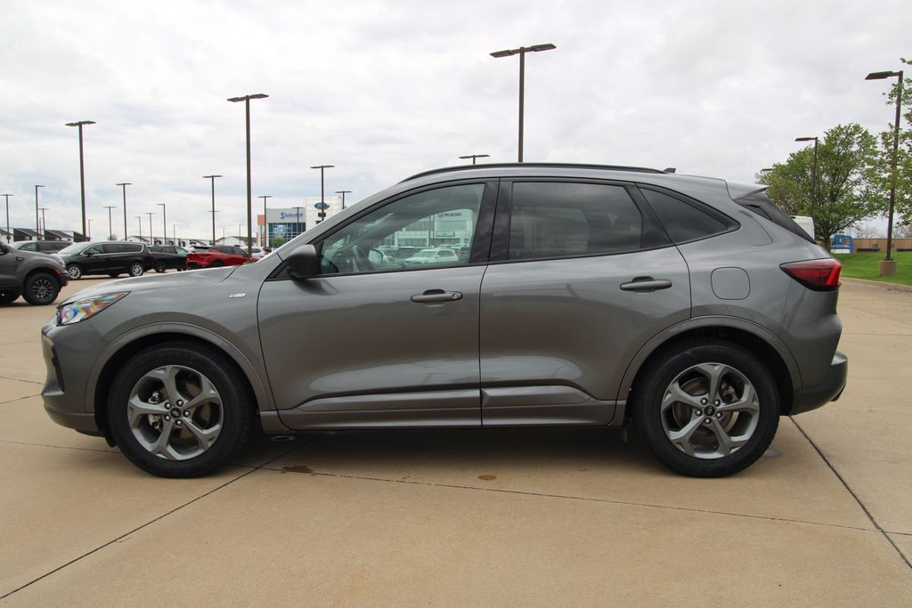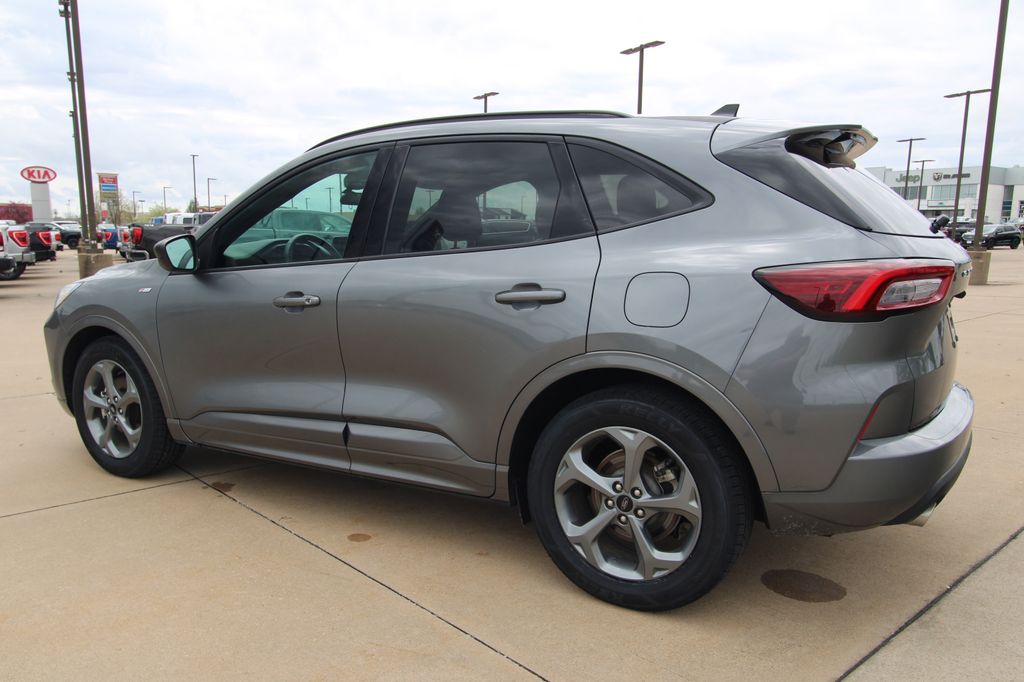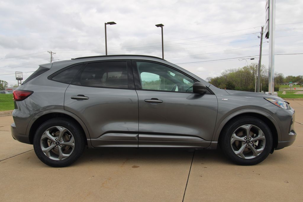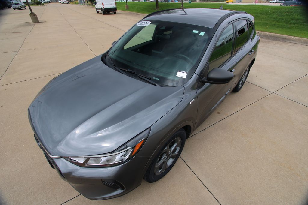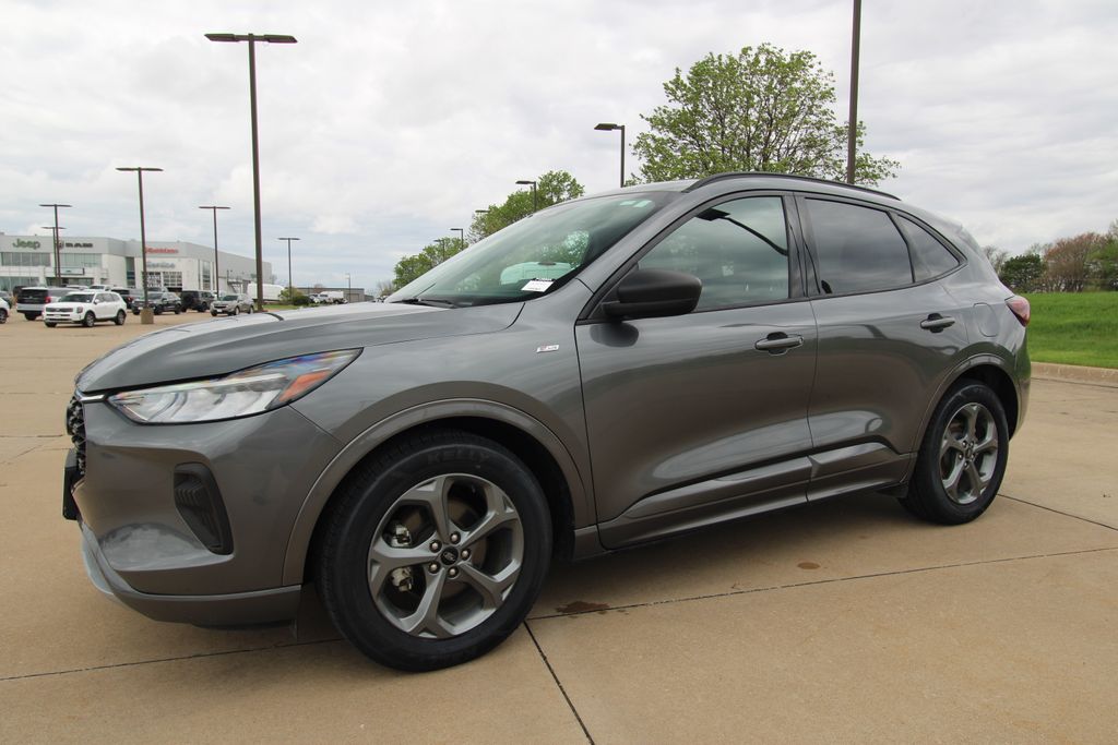 2023 Ford Escape ST-Line Carbonized Gray Metallic 4D Sport Utility 1.5L EcoBoost 8-Speed Automatic FWD ST-Line This vehicle comes well equipped with Equipment Group 300A, 3.81 Axle Ratio, 4-Wheel Disc Brakes, 6 Speakers, ABS brakes, Air Conditioning, Alloy wheels, AM/FM radio: SiriusXM, AM/FM Stereo, Auto High-beam Headlights, Automatic temperature control, Brake assist, Bumpers: body-color, Compass, Delay-off headlights, Driver door bin, Driver vanity mirror, Dual front impact airbags, Dual front side impact airbags, Electronic Fuel Door Release, Electronic Stability Control, Emergency communication system: SYNC 4 911 Assist, Exterior Parking Camera Rear, FordPass Connect, Four wheel independent suspension, Front anti-roll bar, Front Bucket Seats, Front Center Armrest, Front dual zone A/C, Front License Plate Bracket, Front reading lights, Fully automatic headlights, Illuminated entry, Knee airbag, Low tire pressure warning, Neutral Towing Capability, Occupant sensing airbag, Outside temperature display, Overhead airbag, Overhead console, Panic alarm, Passenger door bin, Passenger vanity mirror, Pedestrian Alert Sounder, Power door mirrors, Power driver seat, Power Liftgate, Power steering, Power windows, Radio data system, Rear anti-roll bar, Rear reading lights, Rear seat center armrest, Rear window defroster, Rear window wiper, Remote keyless entry, Speed control, Speed-sensing steering, Speed-Sensitive Wipers, Split folding rear seat, Spoiler, Sport steering wheel, Steering wheel mounted audio controls, SYNC 4, Tachometer, Telescoping steering wheel, Tilt steering wheel, Traction control, Trip computer, Variably intermittent wipers, Vinyl/Cloth Front Sport Contour Bucket Seats, and Wheels: 18" Rock Metallic Painted Aluminum.