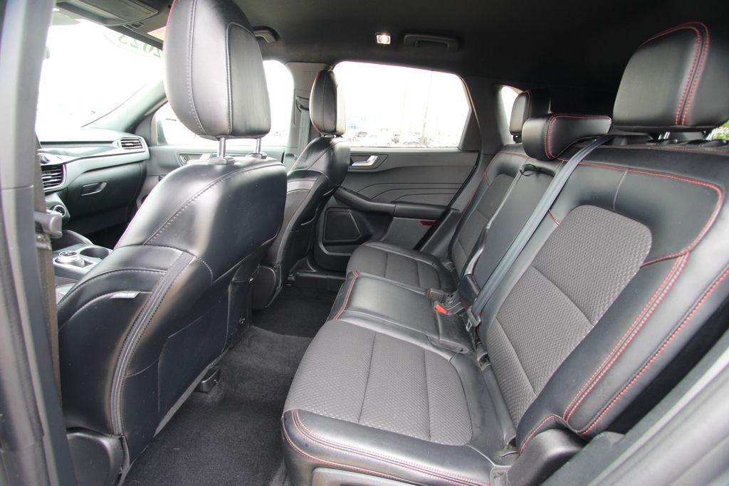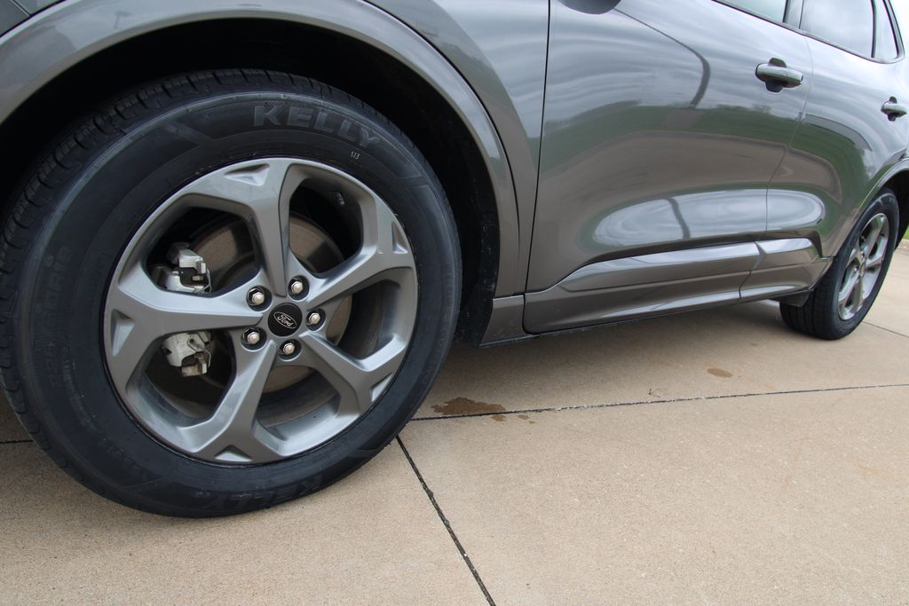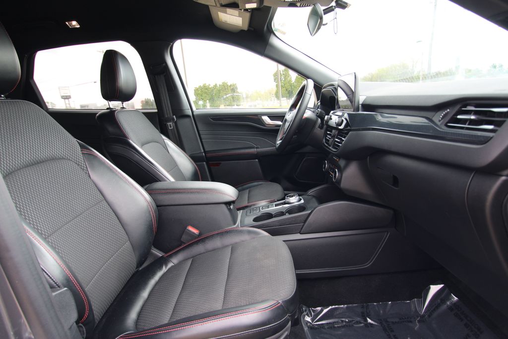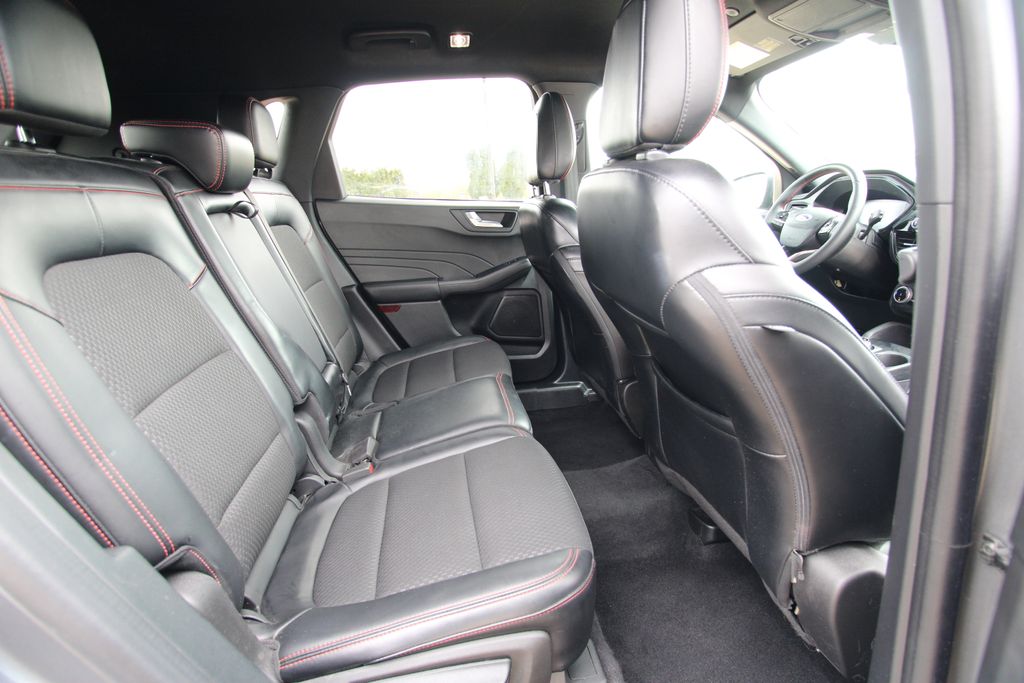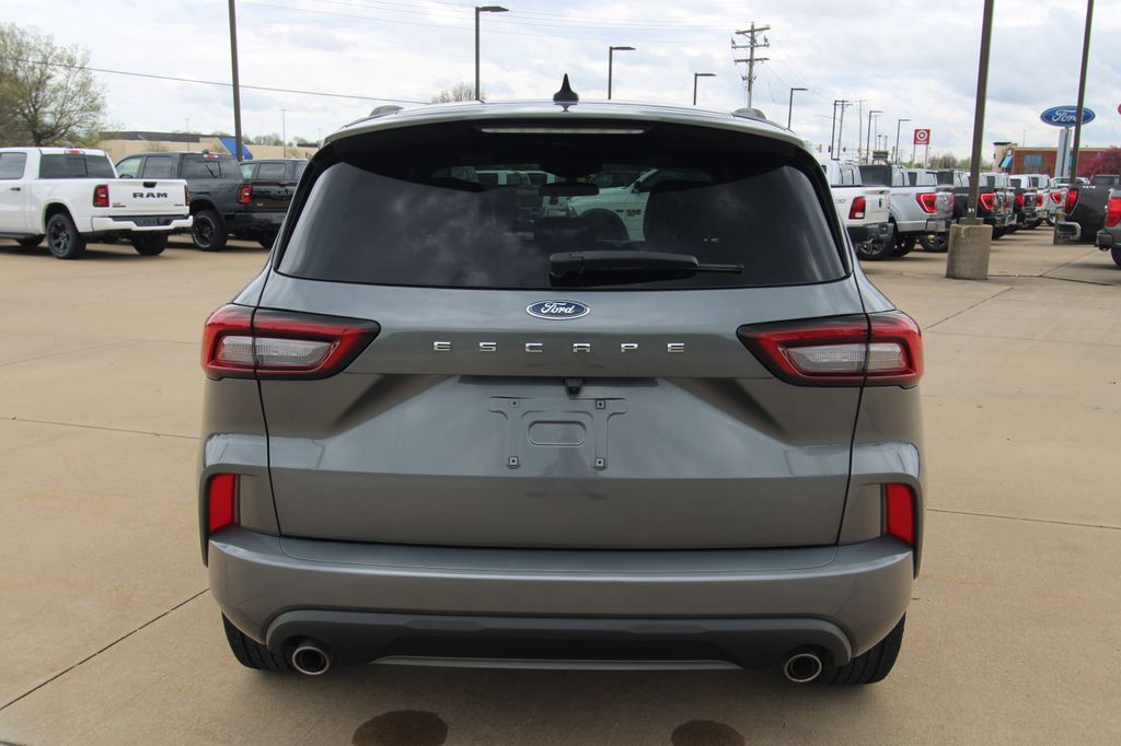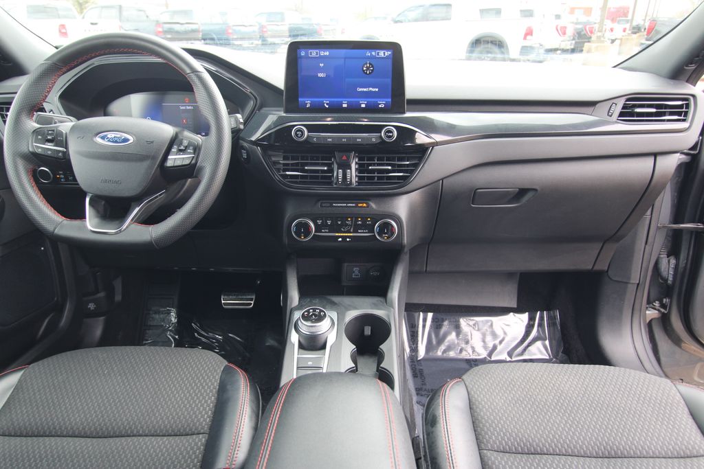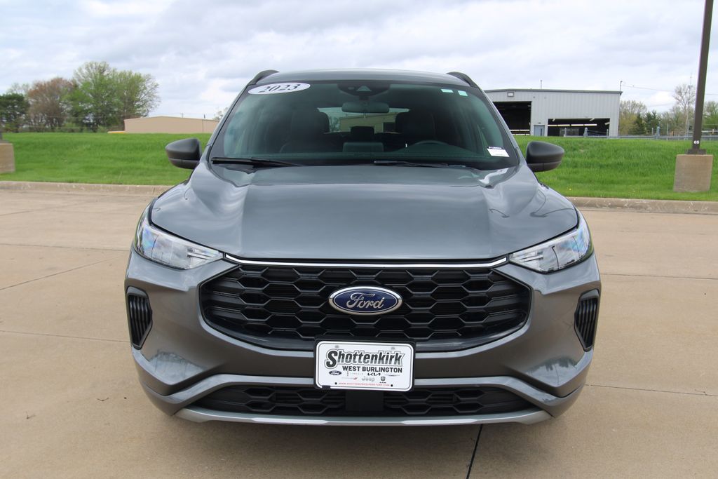 2023 Ford Escape ST-Line Carbonized Gray Metallic 4D Sport Utility 1.5L EcoBoost 8-Speed Automatic FWD ST-Line This vehicle comes well equipped with Equipment Group 300A, 3.81 Axle Ratio, 4-Wheel Disc Brakes, 6 Speakers, ABS brakes, Air Conditioning, Alloy wheels, AM/FM radio: SiriusXM, AM/FM Stereo, Auto High-beam Headlights, Automatic temperature control, Brake assist, Bumpers: body-color, Compass, Delay-off headlights, Driver door bin, Driver vanity mirror, Dual front impact airbags, Dual front side impact airbags, Electronic Fuel Door Release, Electronic Stability Control, Emergency communication system: SYNC 4 911 Assist, Exterior Parking Camera Rear, FordPass Connect, Four wheel independent suspension, Front anti-roll bar, Front Bucket Seats, Front Center Armrest, Front dual zone A/C, Front License Plate Bracket, Front reading lights, Fully automatic headlights, Illuminated entry, Knee airbag, Low tire pressure warning, Neutral Towing Capability, Occupant sensing airbag, Outside temperature display, Overhead airbag, Overhead console, Panic alarm, Passenger door bin, Passenger vanity mirror, Pedestrian Alert Sounder, Power door mirrors, Power driver seat, Power Liftgate, Power steering, Power windows, Radio data system, Rear anti-roll bar, Rear reading lights, Rear seat center armrest, Rear window defroster, Rear window wiper, Remote keyless entry, Speed control, Speed-sensing steering, Speed-Sensitive Wipers, Split folding rear seat, Spoiler, Sport steering wheel, Steering wheel mounted audio controls, SYNC 4, Tachometer, Telescoping steering wheel, Tilt steering wheel, Traction control, Trip computer, Variably intermittent wipers, Vinyl/Cloth Front Sport Contour Bucket Seats, and Wheels: 18" Rock Metallic Painted Aluminum.