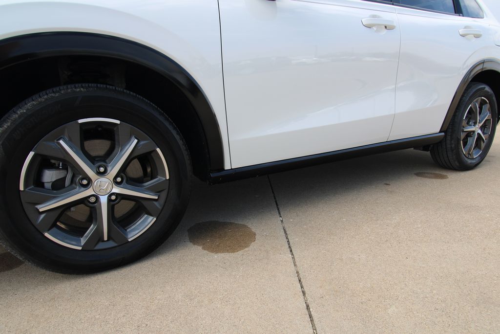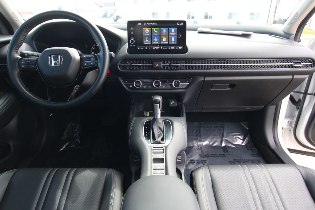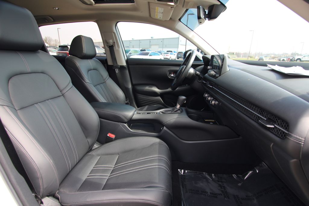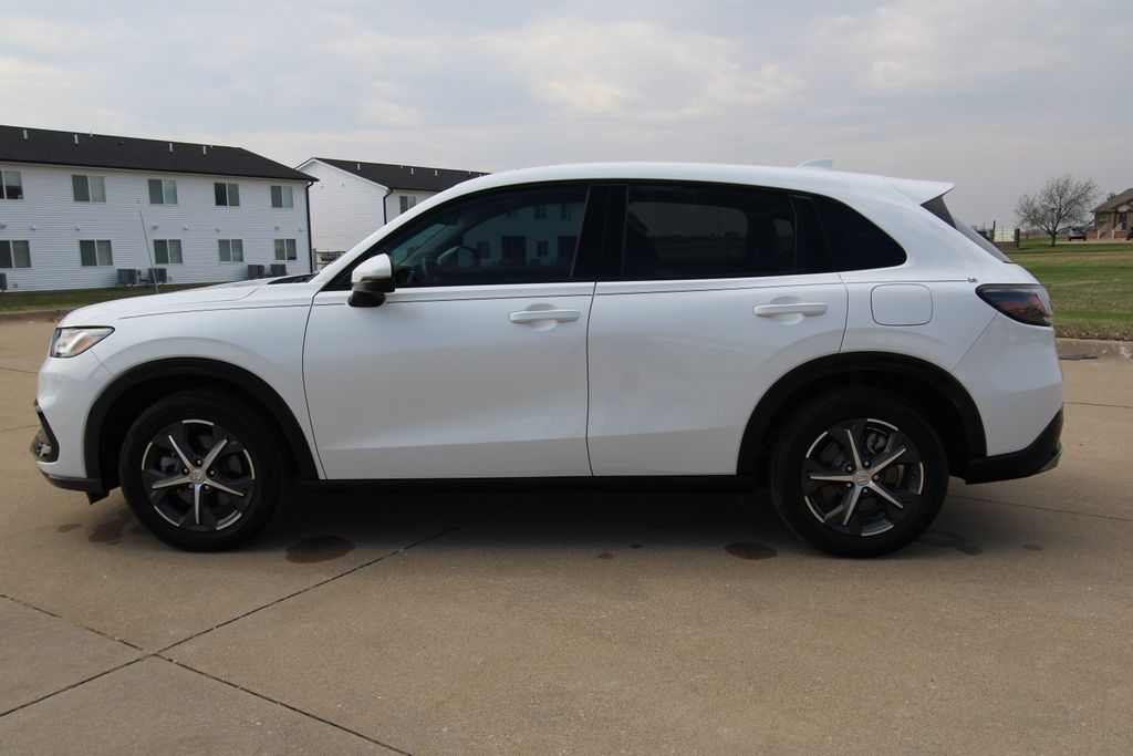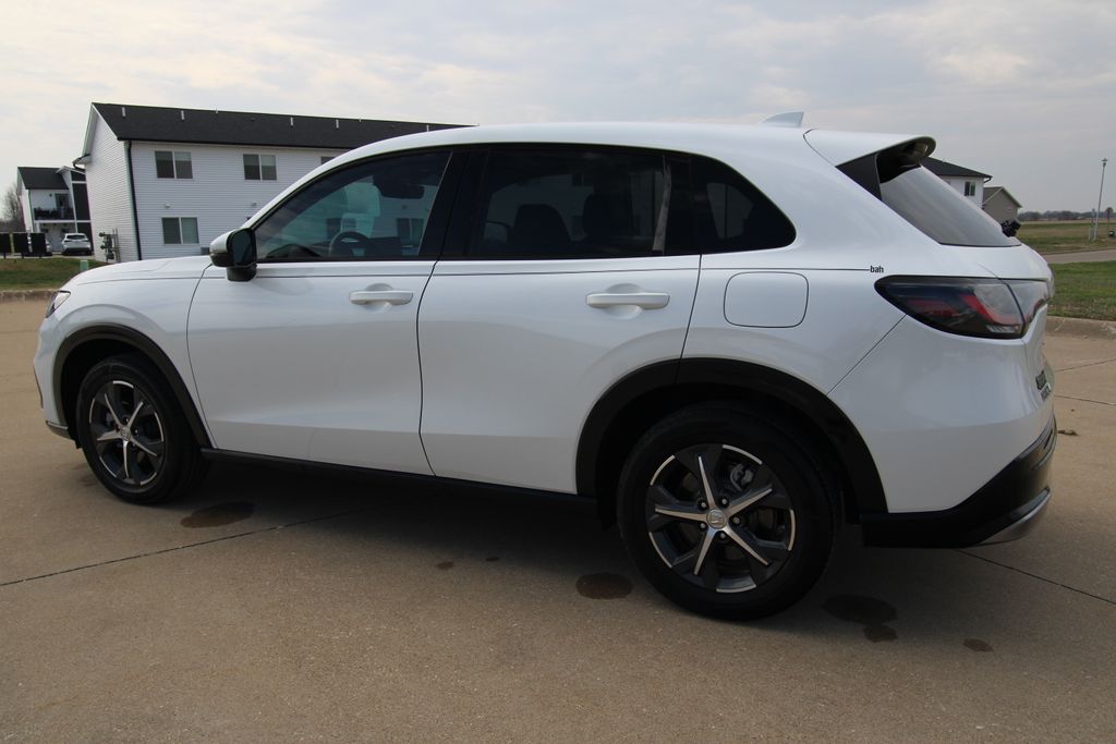 2023 Honda HR-V EX-L Platinum White Pearl 4D Sport Utility 2.0L I4 DOHC 16V i-VTEC CVT FWD EX-L This vehicle comes well equipped with 17" Machine-Finished Alloy Wheels, 4-Wheel Disc Brakes, 5.436 Axle Ratio, 8 Speakers, ABS brakes, Adaptive Cruise Control: Adaptive Cruise Control (ACC) with Low-Speed Follow, Air Conditioning, Alloy wheels, AM/FM radio: SiriusXM, Apple CarPlay/Android Auto, Auto High-beam Headlights, Auto-dimming Rear-View mirror, Automatic temperature control, Blind Spot Information (BSI) System warning, Brake assist, Bumpers: body-color, Compass, Delay-off headlights, Driver door bin, Driver vanity mirror, Dual front impact airbags, Dual front side impact airbags, Electronic Stability Control, Emergency communication system: HondaLink, Exterior Parking Camera Rear, Four wheel independent suspension, Front anti-roll bar, Front Bucket Seats, Front Center Armrest, Front dual zone A/C, Front reading lights, Fully automatic headlights, Heated door mirrors, Heated Front Bucket Seats, Heated front seats, Illuminated entry, Knee airbag, Leather Shift Knob, Leather-Trimmed Seats, Low tire pressure warning, Occupant sensing airbag, Outside temperature display, Overhead airbag, Panic alarm, Passenger door bin, Passenger vanity mirror, Power door mirrors, Power driver seat, Power moonroof, Power steering, Power windows, Radio data system, Radio: 180-Watt Audio System w/8 Speakers, Rear anti-roll bar, Rear reading lights, Rear side impact airbag, Rear window defroster, Rear window wiper, Remote keyless entry, Security system, Speed control, Speed-sensing steering, Split folding rear seat, Spoiler, Steering wheel mounted audio controls, Tachometer, Telescoping steering wheel, Tilt steering wheel, Traction control, Trip computer, Turn signal indicator mirrors, and Variably intermittent wipers.