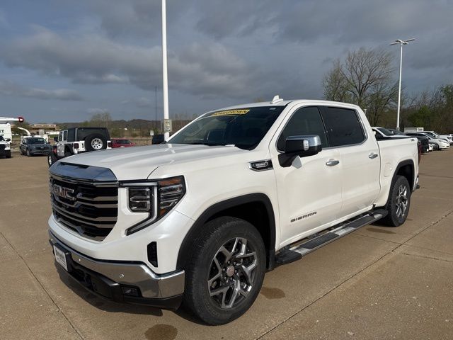 CARFAX One-Owner. Navigation, Leather, Heated and cooled seats, Heated seats, Heated steering wheel, XM SIRIUS Radio, Push button start, Local trade, Shottenkirk Certified, Fully Serviced and Detailed, Bluetooth, Rear Back Up Camera, Power driver's seat, Power passenger seat, Memory seats, Blind spot indicator, Tow package, Safety Package, Convenience Package, Apple Car Play, Onstar, Balance of factory warranty, Free Carfax history report, Steering Wheel Controls, Alloy Wheels, Leather Interior, Lane Monitor, Sierra 1500 SLT, 4D Crew Cab, 3.0L I6, 10-Speed Automatic, 4WD, White Frost Tricoat, Jet Black w/Perf Leather-Appointed Front Outboard Seat Trim, 10-Way Power Driver Seat Adjuster w/Lumbar, 10-Way Power Passenger Seat Adjuster w/Lumbar, 120-Volt Bed Mounted Power Outlet, 120-Volt Interior Power Outlet, 170 Amp Alternator, 2 Charge/Data USB Ports, 2 Charge/Data USB Ports Inside Center Console, 2 Type-C Charge-Only Rear USB Ports, 20" Polished Aluminum Wheels, 3.23 Rear Axle Ratio, 4-Wheel Disc Brakes, 6 Speakers, 6-Speaker Audio System Feature, ABS brakes, Adaptive Cruise Control, Air Conditioning, All-Weather Floor Liner (LPO), Alloy wheels, AM/FM radio: SiriusXM with 360L, Apple CarPlay/Android Auto, Auto High-beam Headlights, Auto-dimming door mirrors, Auto-dimming Rear-View mirror, Auto-Locking Rear Differential, Automatic Emergency Braking, Automatic temperature control, Auxiliary External Transmission Oil Cooler, Brake assist, Buckle to Drive, Bumpers: chrome, Chrome Header & Chrome Grille Insert Bars, Chrome Wheel To Wheel Assist Steps, Color-Keyed Carpeting Floor Covering, Compass, Deep-Tinted Glass, Delay-off headlights, Driver door bin, Driver Memory, Driver vanity mirror, Dual Exhaust System, Dual front impact airbags, Dual front side impact airbags, Electric Rear-Window Defogger, Electronic Precision Shift, Electronic stabiliy control, Engine Block Heater, Floor-Mounted Center Console, Following Distance Indicator, Forward Collision Alert, Front anti-roll bar, Front Bucket Seats, Front Center Armrest w/Storage, Front dual zone A/C, Front fog lights, Front Frame-Mounted Black Recovery Hooks, Front License Plate Kit, Front Pedestrian Braking, Front Rain-Sensing Wipers, Front reading lights, Front wheel independent suspension, Fully automatic headlights, GMC Connected Access Capable, HD Rear Vision Camera, HD Surround Vision, Heated 2nd Row Outboard Seats, Heated door mirrors, Heated Driver & Front Outboard Passenger Seating, Heated front seats, Heated steering wheel, Heavy-Duty Air Filter, High Capacity Suspension Package, Hill Descent Control, Hitch Guidance, Hitch View, Illuminated entry, In-Vehicle Trailering System App, Integrated Trailer Brake Controller, IntelliBeam Automatic High Beam On/Off, Keyless Open & Start, Lane Keep Assist w/Lane Departure Warning, LED Cargo Area Lighting, Low tire pressure warning, Manual Tilt-Wheel & Telescoping Steering Column, Memory seat, Navigation System, Occupant sensing airbag, Off-Road Suspension, OnStar & GMC Connected Services Capable, Outside temperature display, Overhead airbag, Overhead console, Panic alarm, Passenger door bin, Passenger vanity mirror, Perf Leather-Appointed Front Outboard Seat Trim, Perimeter Lighting, Power Door Locks, Power door mirrors, Power driver seat, Power Front Passenger Windows w/Express Up/Down, Power Front Windows w/Driver Express Up/Down, Power passenger seat, Power Rake & Telescoping Steering Column, Power Rear Windows w/Express Down, Power Sliding Rear Window w/Rear Defogger, Power steering, Power windows, Preferred Equipment Group 4SA, Premium audio system: GMC Infotainment System, Premium Bose 7-Speaker Sound System, ProGrade Trailering System, Push Button Start, Radio data system, Radio: Premium GMC Infotainment Audio System, Rain sensing wipers, Rear Cross Traffic Braking, Rear Pedestrian Detection, Rear reading lights, Rear seat center armrest, Rear step bumper, Rear Wheelhouse Liners, Rear window defroster, Remote keyless entry,