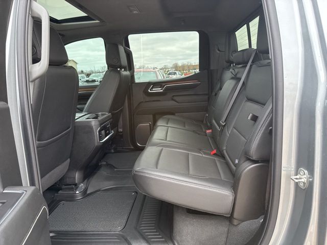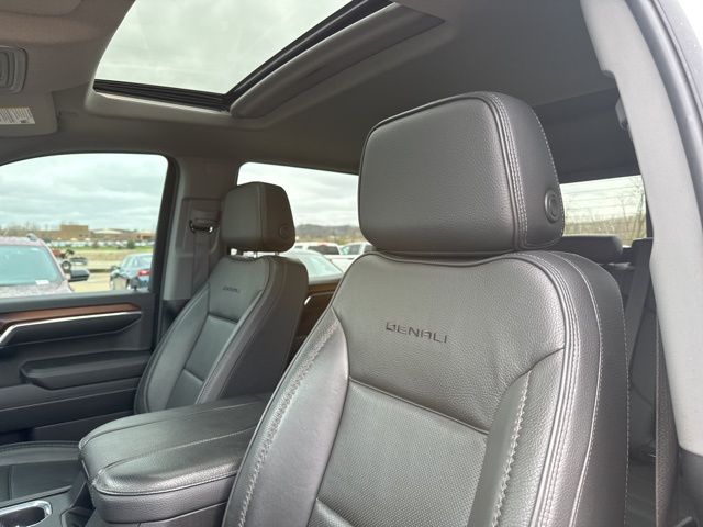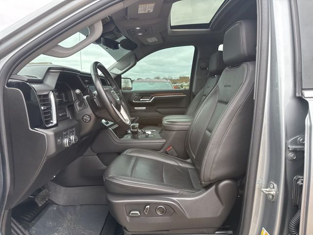 Navigation, Moonroof, Leather, Heated and cooled seats, Heated seats, Heated steering wheel, XM SIRIUS Radio, Local trade, Shottenkirk Certified, Fully Serviced and Detailed, Bluetooth, Rear Back Up Camera, Power driver's seat, Power passenger seat, Memory seats, Blind spot indicator, Tow package, Apple Car Play, Onstar, Balance of factory warranty, Free Carfax history report, Steering Wheel Controls, Alloy Wheels, Leather Interior, Power Sunroof/Moonroof, Lane Monitor, Adaptive Cruise, Sierra 1500 Denali, 4D Crew Cab, 3.0L I6, 10-Speed Automatic, 4WD, Sterling Metallic, Jet Black w/Forge Perforated Leather Seat Trim, 12-Way Power Driver Seat Adjuster w/Lumbar, 12-Way Power Passenger Seat Adjuster w/Lumbar, 120-Volt Bed Mounted Power Outlet, 120-Volt Interior Power Outlet, 170 Amp Alternator, 2 Charge/Data USB Ports Inside Center Console, 2 Type-C Charge-Only Rear USB Ports, 2 USB Ports, 3.23 Rear Axle Ratio, 4-Wheel Disc Brakes, 7 Speakers, ABS brakes, Adaptive suspension, Air Conditioning, Alloy wheels, AM/FM radio: SiriusXM with 360L, Apple CarPlay/Android Auto, Auto High-beam Headlights, Auto-dimming door mirrors, Auto-dimming Rear-View mirror, Auto-Locking Rear Differential, Automatic temperature control, Auxiliary External Transmission Oil Cooler, Bed View Camera, Body Color Wheel Arch Moldings (LPO), Brake assist, Buckle to Drive, Bumpers: body-color, Chrome Header w/Signature Denali Chrome Grille, Chrome Recovery Hooks, Chrome Wheel To Wheel Assist Steps, Color-Keyed Carpeting Floor Covering, Compass, Deep-Tinted Glass, Delay-off headlights, Denali Premium Suspension w/Adaptive Ride Control, Denali Reserve Package, Driver door bin, Driver Memory, Driver vanity mirror, Dual front impact airbags, Dual front side impact airbags, Electric Rear-Window Defogger, Electronic stabiliy control, Emergency communication system: OnStar and GMC connected services capable, Engine Block Heater, Enhanced Automatic Emergency Braking, Floor-Mounted Center Console, Following Distance Indicator, Forge Perforated Leather Seat Trim, Forward Collision Alert, Front anti-roll bar, Front Bucket Seats, Front Center Armrest, Front dual zone A/C, Front fog lights, Front License Plate Kit, Front Pedestrian Braking, Front Prem Floor Liners w/Removable Carpet Insert, Front Rain-Sensing Wipers, Front reading lights, Front wheel independent suspension, Fully automatic headlights, Genuine wood console insert, Genuine wood dashboard insert, Genuine wood door panel insert, GMC Connected Access Capable, GMC MultiPro Power Steps, HD Surround Vision, Heated 2nd Row Outboard Seats, Heated door mirrors, Heated Driver & Front Outboard Passenger Seating, Heated front seats, Heated rear seats, Heated steering wheel, Heavy-Duty Air Filter, Hill Descent Control, Hitch Guidance, Hitch View, Illuminated entry, In-Vehicle Trailering System App, Integrated Trailer Brake Controller, IntelliBeam Automatic High Beam On/Off, Keyless Open & Start, Lane Keep Assist w/Lane Departure Warning, LED Cargo Area Lighting, Low tire pressure warning, Memory seat, Multicolor 15" Diagonal Head-Up Display, Navigation System, Occupant sensing airbag, OnStar & GMC Connected Services Capable, Outside temperature display, Overhead airbag, Overhead console, Panic alarm, Passenger door bin, Passenger vanity mirror, Perimeter Lighting, Power Door Locks, Power door mirrors, Power driver seat, Power Front Passenger Windows w/Express Up/Down, Power Front Windows w/Driver Express Up/Down, Power passenger seat, Power Rake & Telescoping Steering Column, Power Rear Windows w/Express Down, Power Sliding Rear Window w/Rear Defogger, Power steering, Power Sunroof, Power windows, Preferred Equipment Group 5SA, Premium audio system: GMC Infotainment System, Premium Bose 7-Speaker Sound System, Push Button Start, Radio data system, Radio: Premium GMC Infotainment Audio System, Rain sensing wipers, Rear Camera Mirror, Rear Cross Traffic Braking, Rear Pedestrian Detection, Rear Prem Floor Liners w/Removable C