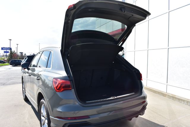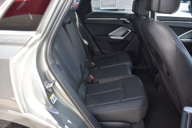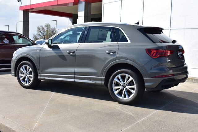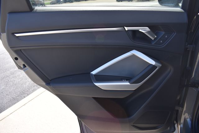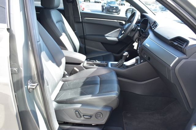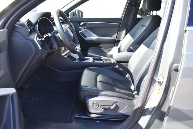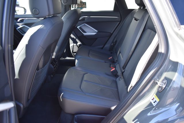 2025 Audi Q3 Gray Premium 2.0L 4-Cylinder TFSI 8-Speed Automatic with Tiptronic quattro Clean Carfax, One Owner, Sunroof/Moonroof, Leather, Backup Camera, Q3 Premium S Line quattro, 8-Speed Automatic with Tiptronic, quattro, Gray, Black w/Leather Seating Surfaces, 10 Speakers, ABS brakes, Air Conditioning, Alloy wheels, AM/FM radio, Automatic temperature control, Bumpers: body-color, Driver door bin, Driver vanity mirror, Exterior Parking Camera Rear, Front Bucket Seats, Front Center Armrest, Front dual zone A/C, Front reading lights, Fully automatic headlights, Heated door mirrors, Heated Front Bucket Seats, Illuminated entry, Leather Seating Surfaces, Leather Shift Knob, Leather steering wheel, Low tire pressure warning, Outside temperature display, Overhead console, Panic alarm, Passenger door bin, Passenger vanity mirror, Power door mirrors, Power driver seat, Power moonroof: Panoramic, Power passenger seat, Power steering, Power windows, Rear air conditioning, Rear seat center armrest, Rear window defroster, Rear window wiper, Speed control, Split folding rear seat, Spoiler, Steering wheel mounted audio controls, Telescoping steering wheel, Tilt steering wheel, Traction control, Turn signal indicator mirrors.
