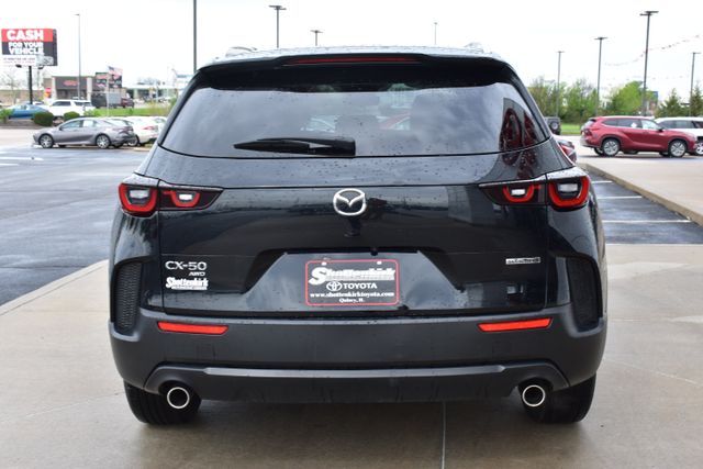2025 Mazda CX-50 Jet Black Mica 2.5 S Preferred Package SKYACTIV® 2.5L 4-Cylinder DOHC 16V 6-Speed Automatic AWD One Owner, Leather, Backup Camera, CX-50 2.5 S Preferred Package, 6-Speed Automatic, AWD, Jet Black Mica, Black w/Gray w/Half Leatherette Seat Trim, 8 Speakers, ABS brakes, Air Conditioning, Alloy wheels, AM/FM radio, Automatic temperature control, Bumpers: body-color, Driver door bin, Driver vanity mirror, Exterior Parking Camera Rear, Front Bucket Seats, Front Center Armrest, Front dual zone A/C, Front reading lights, Fully automatic headlights, Half Leatherette Seat Trim, Heated door mirrors, Heated Front Bucket Seats, Heated front seats, Illuminated entry, Leather Shift Knob, Leather steering wheel, Low tire pressure warning, Outside temperature display, Overhead console, Panic alarm, Passenger door bin, Passenger vanity mirror, Power door mirrors, Power driver seat, Power Liftgate, Power steering, Power windows, Radio data system, Rear seat center armrest, Rear window defroster, Rear window wiper, Remote keyless entry, Speed control, Split folding rear seat, Spoiler, Steering wheel mounted audio controls, Telescoping steering wheel, Tilt steering wheel, Traction control, Turn signal indicator mirrors, Variably intermittent wipers.