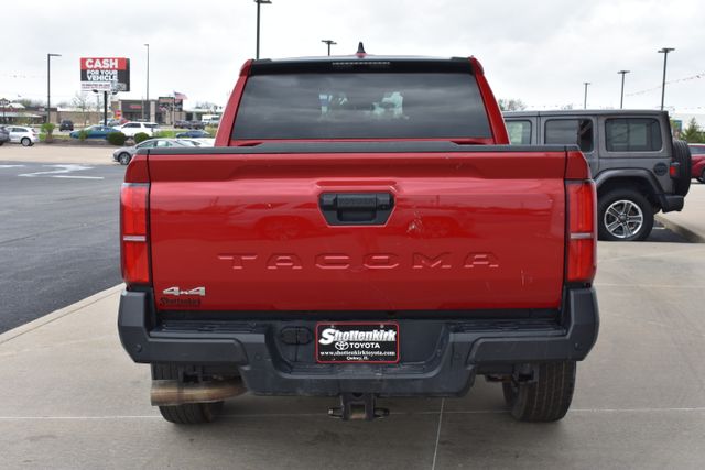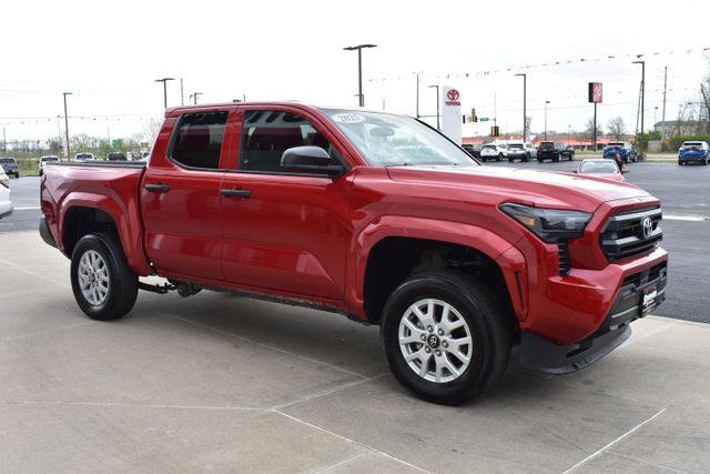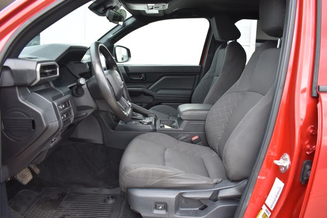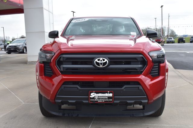2025 Toyota Tacoma Red SR 2.4L 4-Cylinder 8-Speed Automatic 4WD Towing/Camper Pkg, Clean Carfax, One Owner, Navigation, Local Trade, Backup Camera, Tacoma SR, 8-Speed Automatic, 4WD, Red, Black Cloth, 6 Speakers, ABS brakes, Air Conditioning, Alloy wheels, AM/FM radio: SiriusXM, Bumpers: body-color, Driver door bin, Exterior Parking Camera Rear, Fabric Seat Trim, Front Bucket Seats, Front Center Armrest, Front reading lights, Fully automatic headlights, Heated door mirrors, Illuminated entry, Low tire pressure warning, Outside temperature display, Overhead console, Passenger door bin, Power door mirrors, Power steering, Power windows, Rear step bumper, Rear window defroster, Remote keyless entry, Speed control, Split folding rear seat, Steering wheel mounted audio controls, Telescoping steering wheel, Tilt steering wheel, Traction control, Variably intermittent wipers.